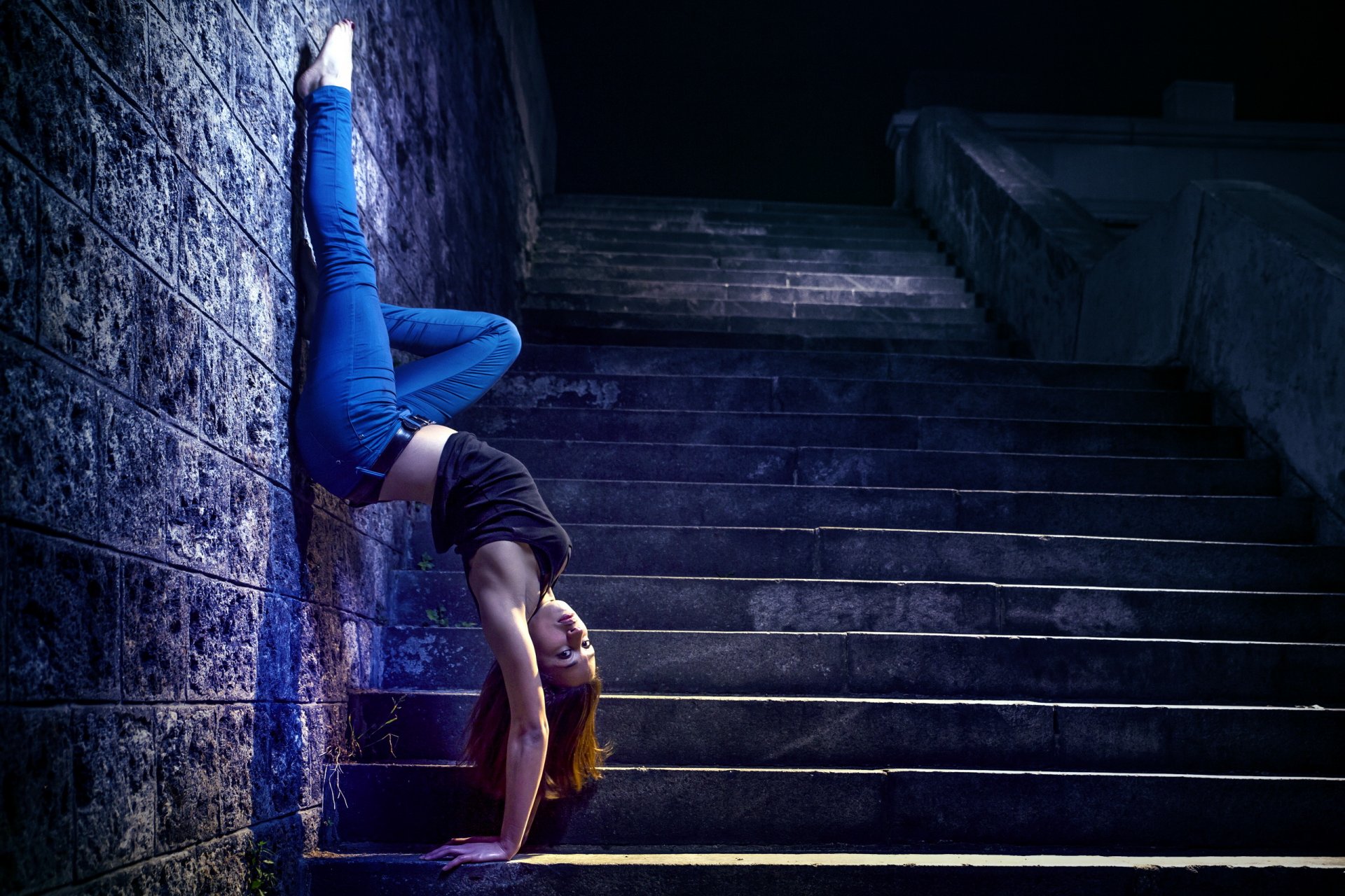Dziewczyna na schodach do góry nogami