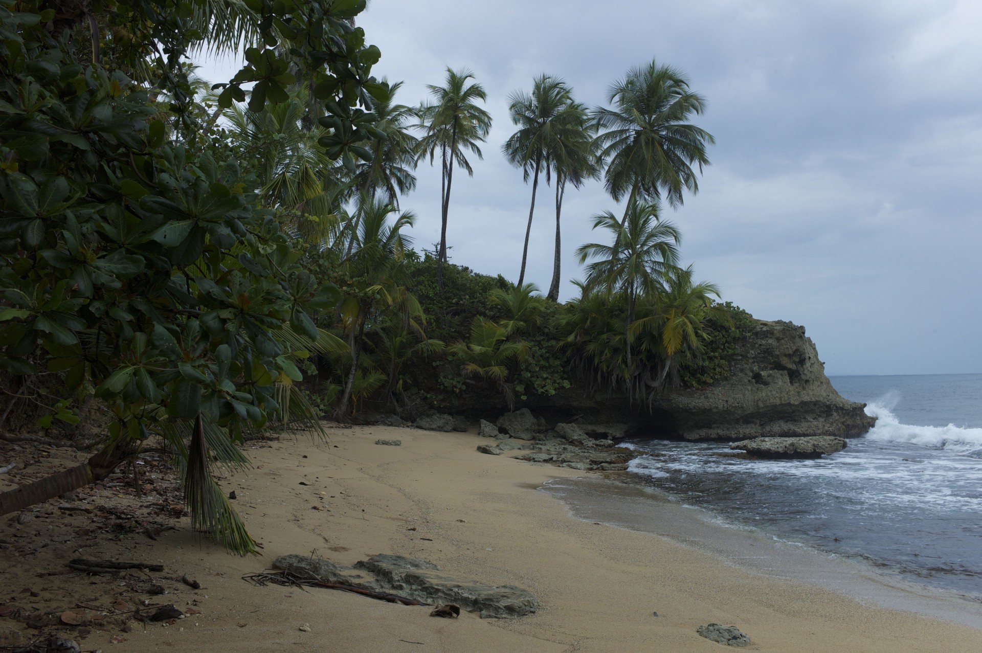 Duszny Zachód słońca. Brzeg oceanu w skałach