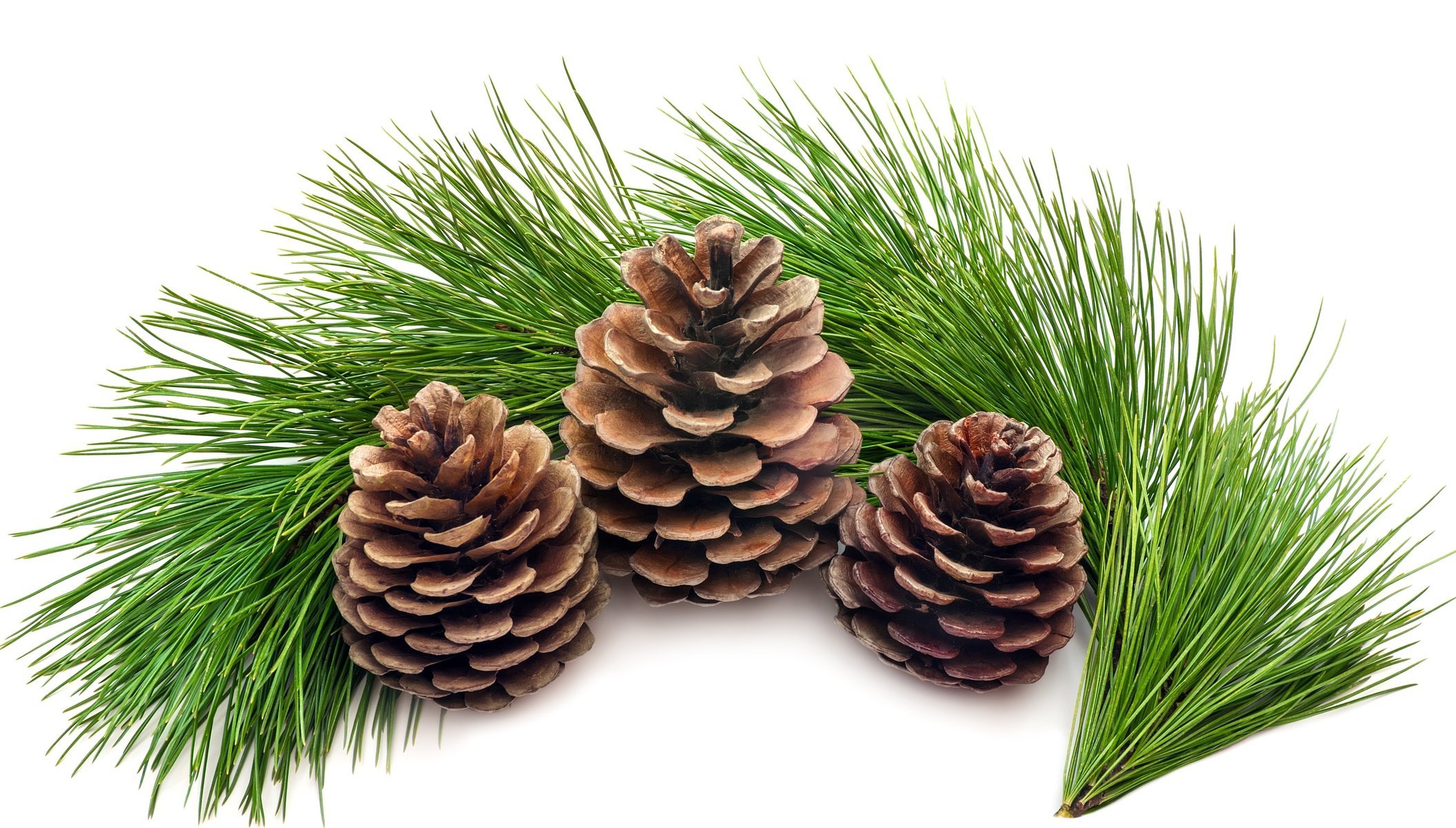 Sosna z długimi zielonymi igłami i małymi szyszkami