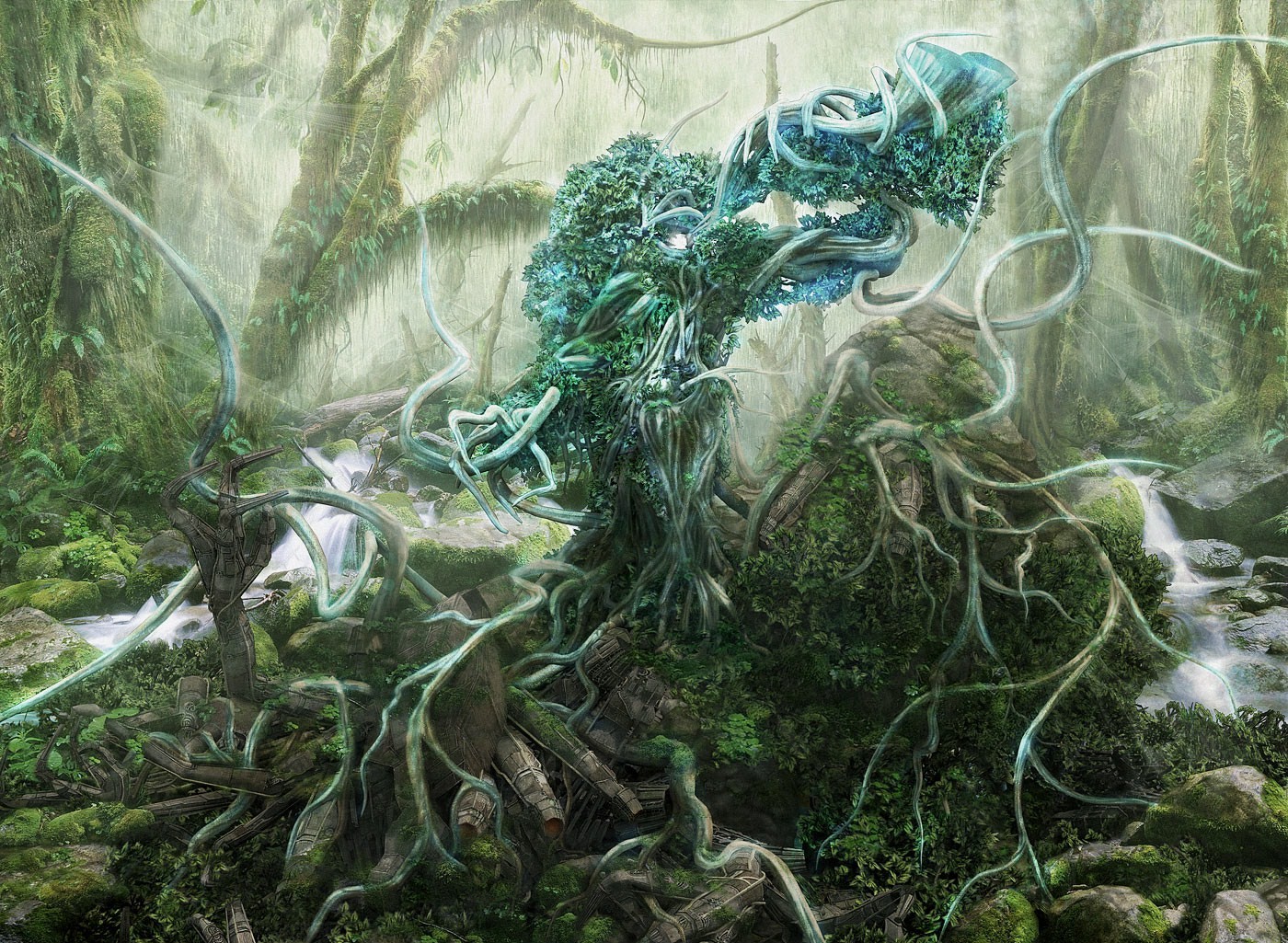 Krajobraz. Promienie słoneczne przez liście drzew wpadają na jezioro
