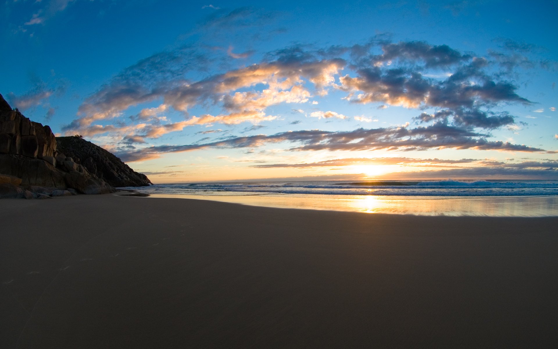 Tapety Wieczorny zachód słońca morze odbicie słońca na horyzoncie