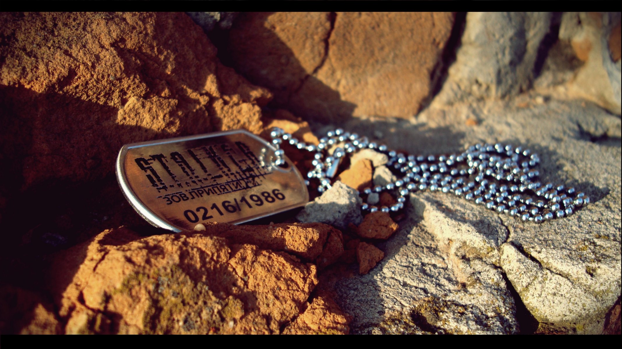 Medalion z łańcuszkiem spoczywa na kamieniach