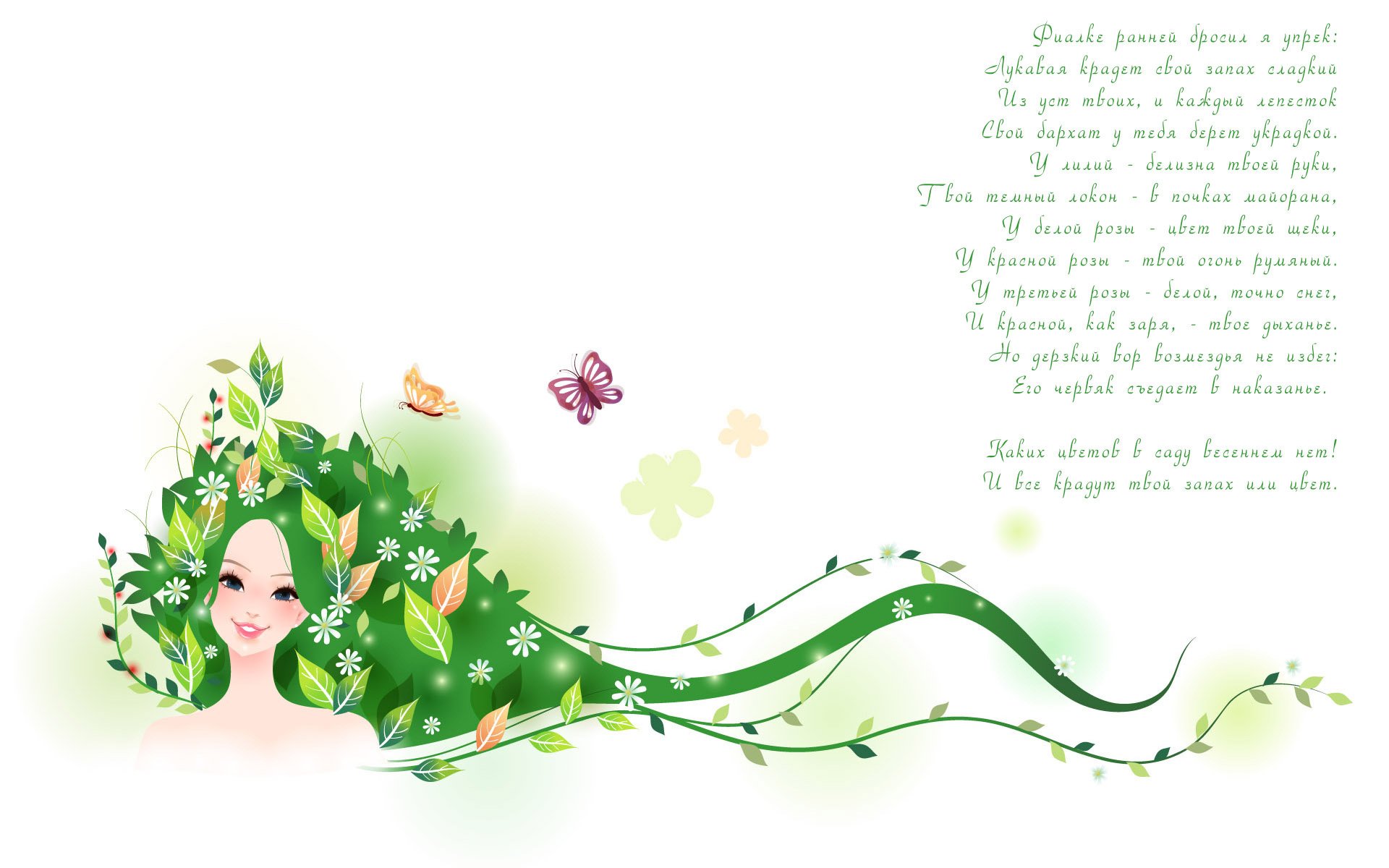 Dziewczyna z zielonym warkoczem na kartce z życzeniami