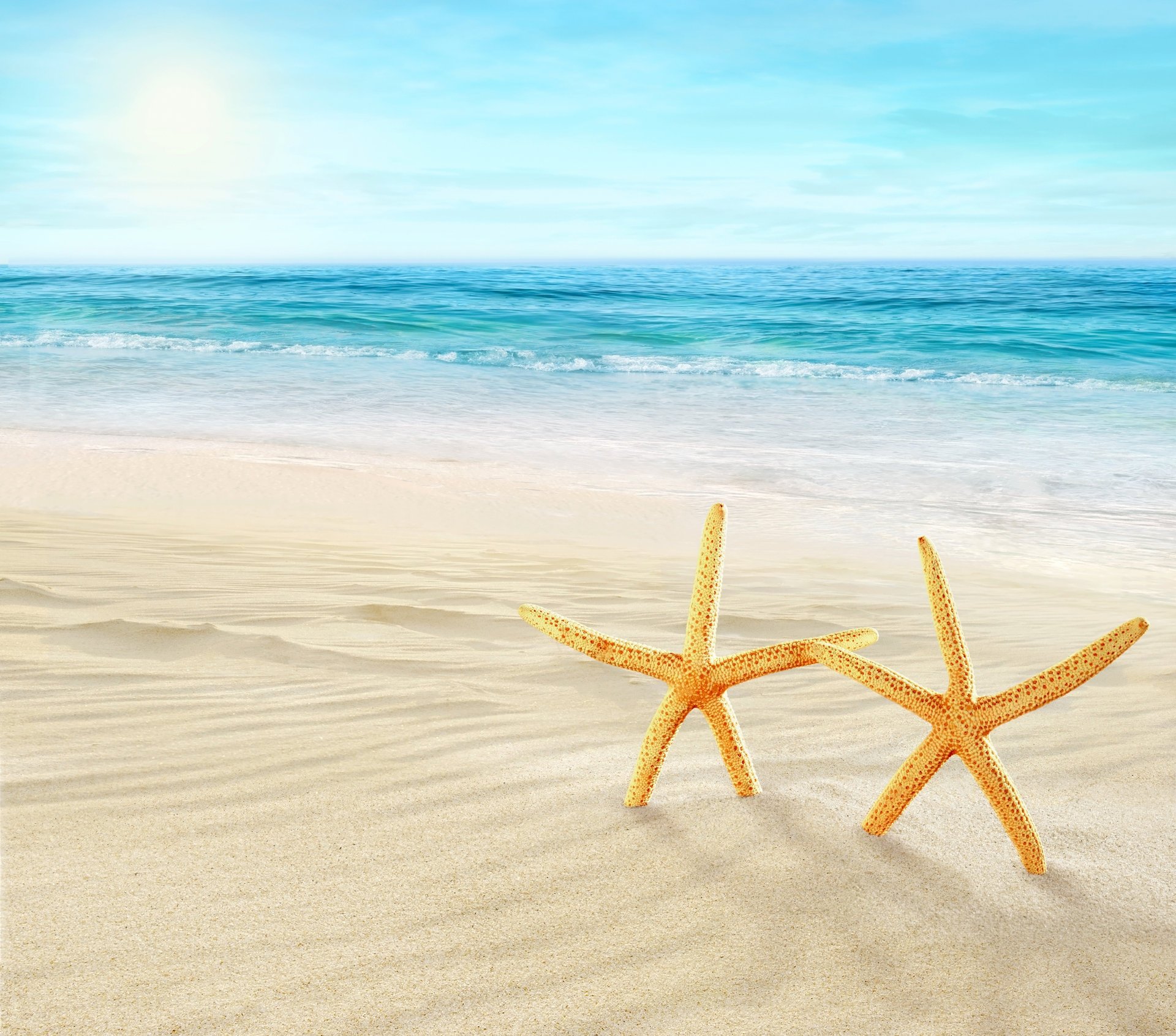 Rozgwiazdy nad morzem na śnieżnobiałej plaży