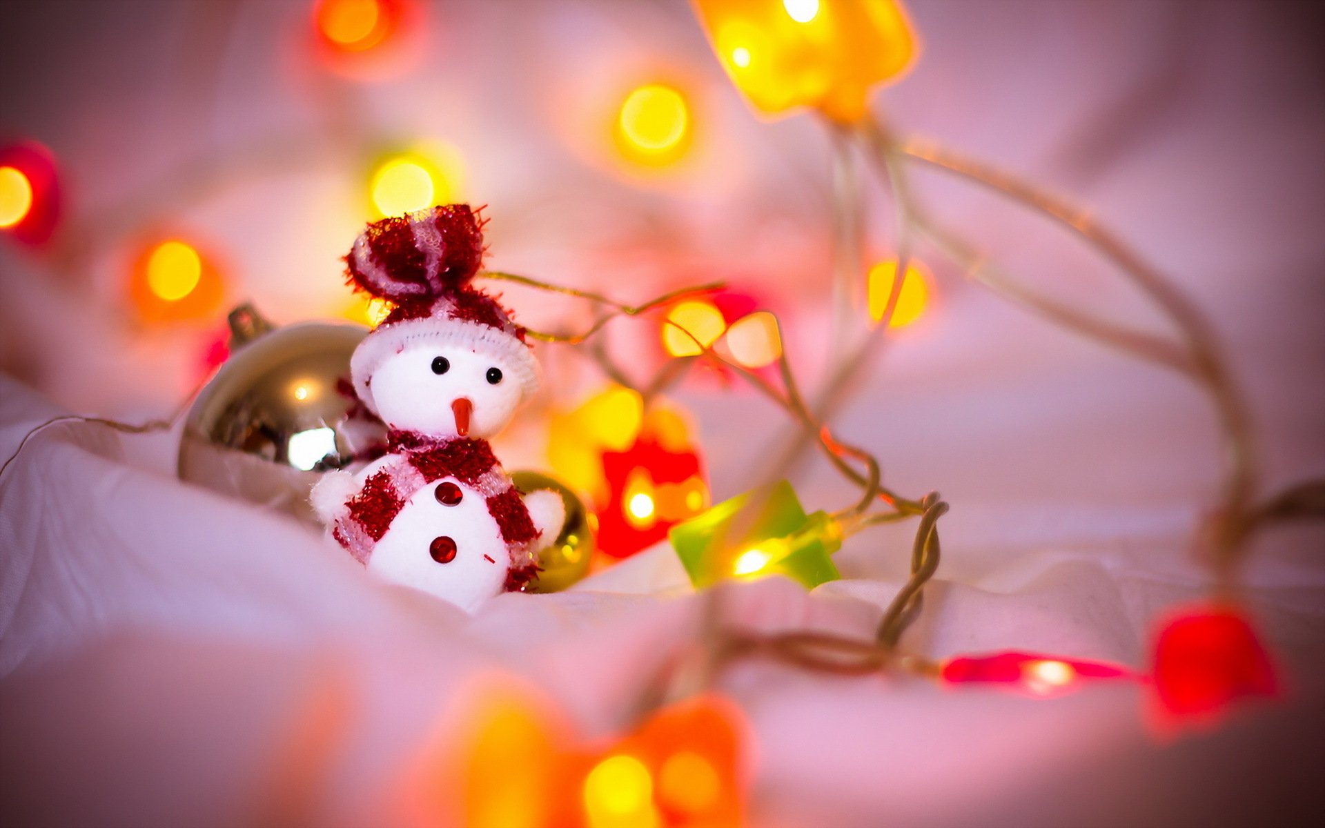 Bałwan zabawka w światłach na Boże Narodzenie