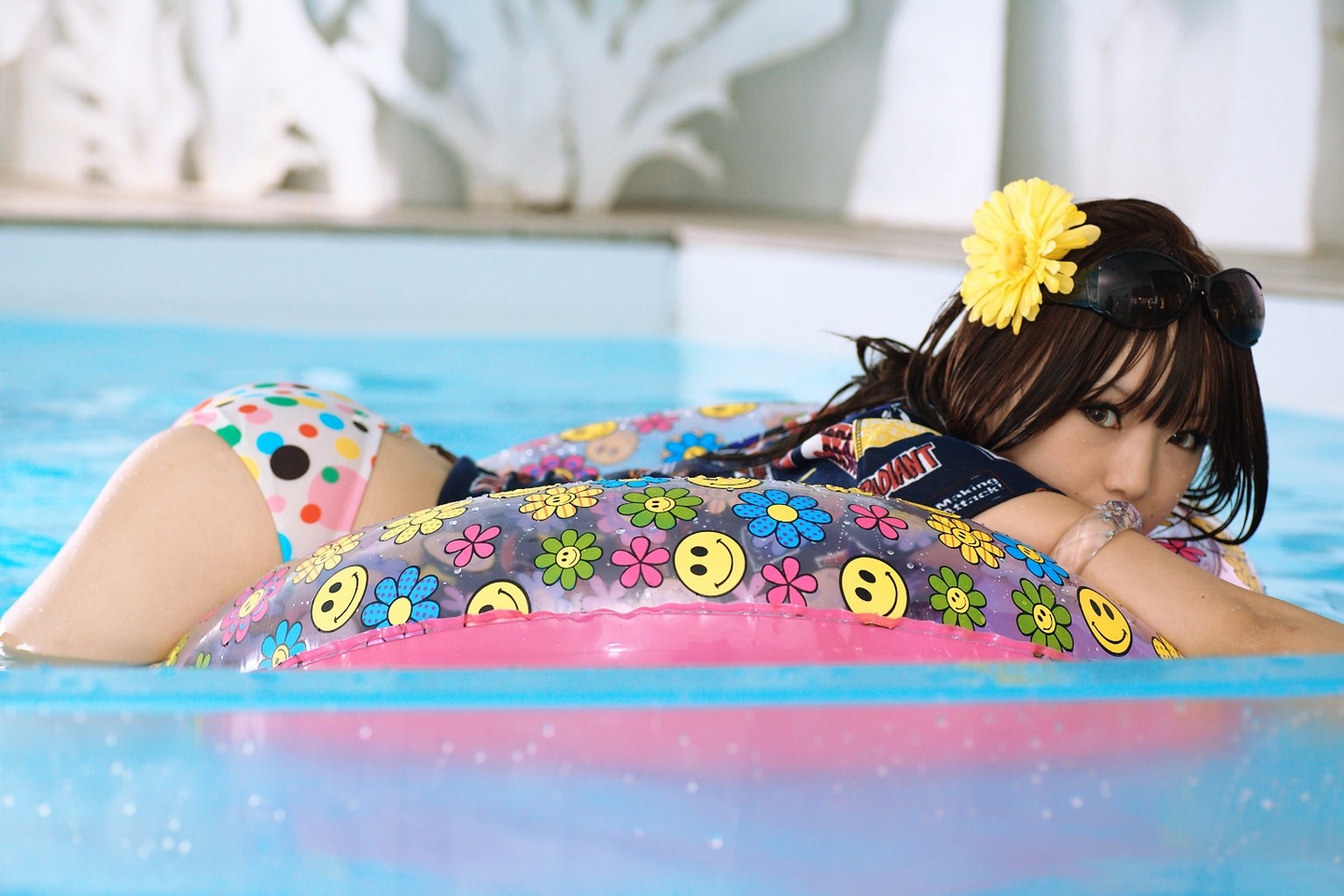 Zdjęcia Azjatki w wodzie na kole