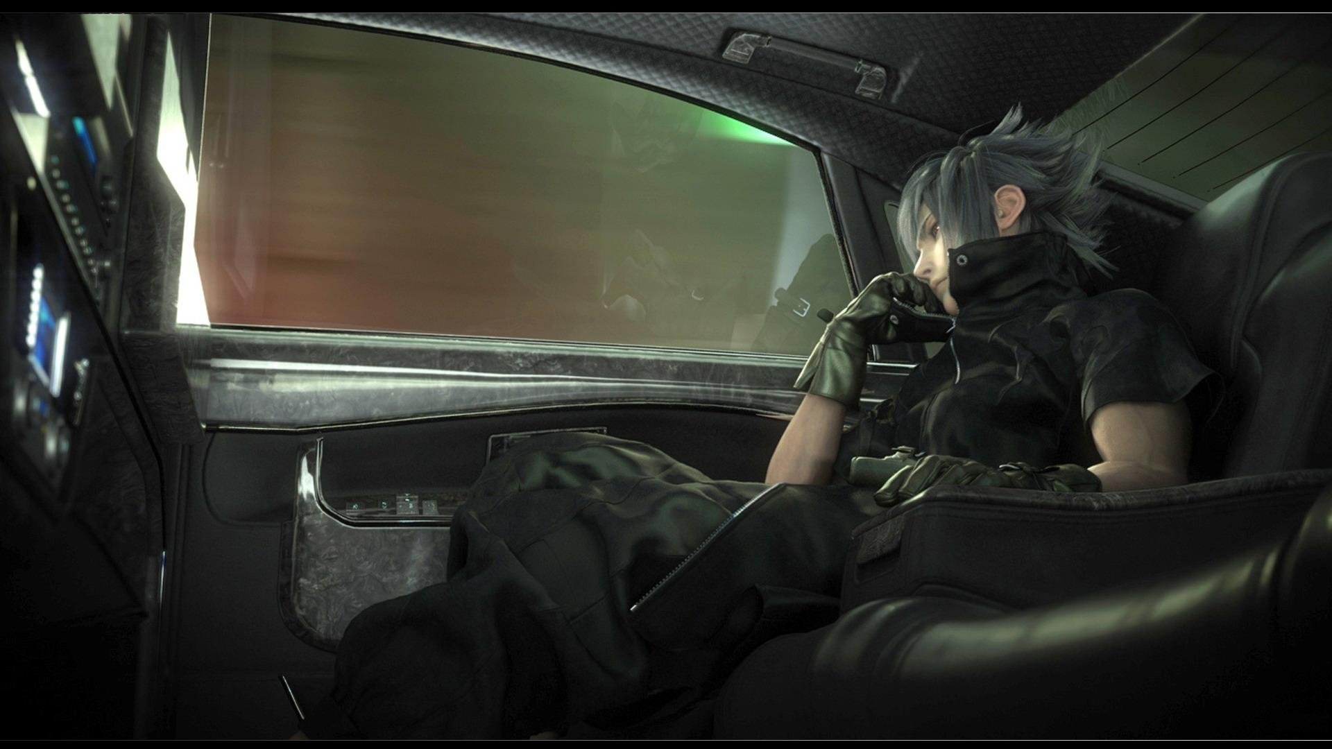Bohater gry final Fantasy xiii na tylnym siedzeniu samochodu