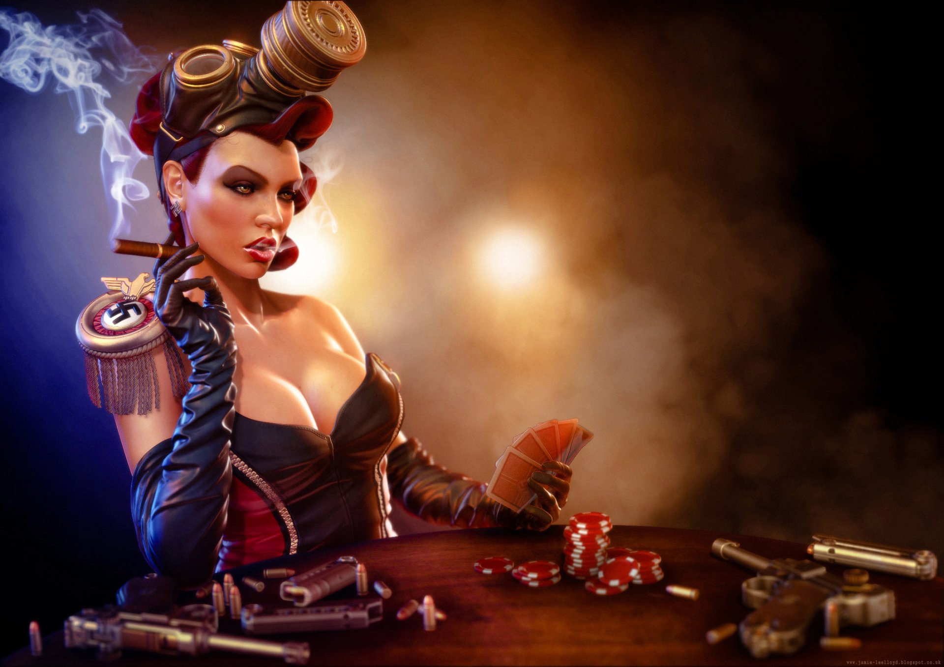 Piękna pani w Czerwieni i dekolcie na tle wsi