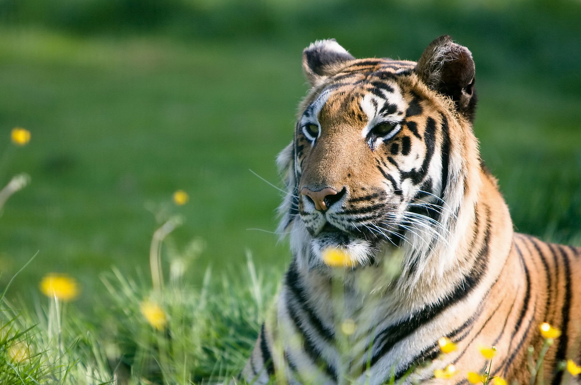 Tygrys ze złym spojrzeniem patrzy w kamerę