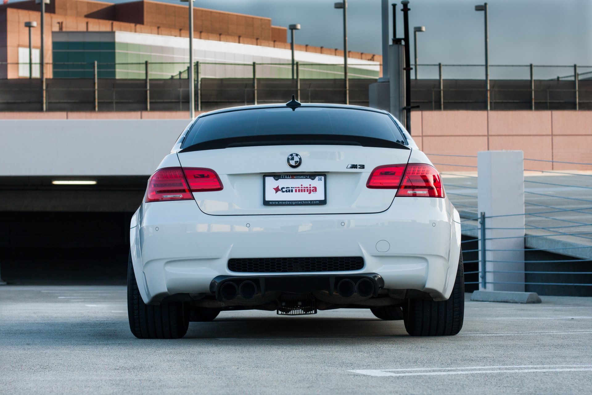 Białe BMW na tle nudnej architektury