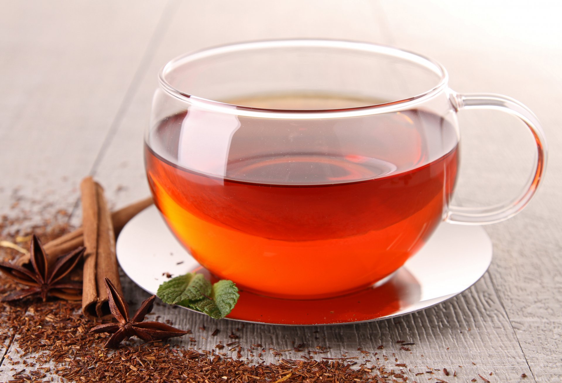 Filiżanka herbaty ze spodkiem i łyżeczkami
