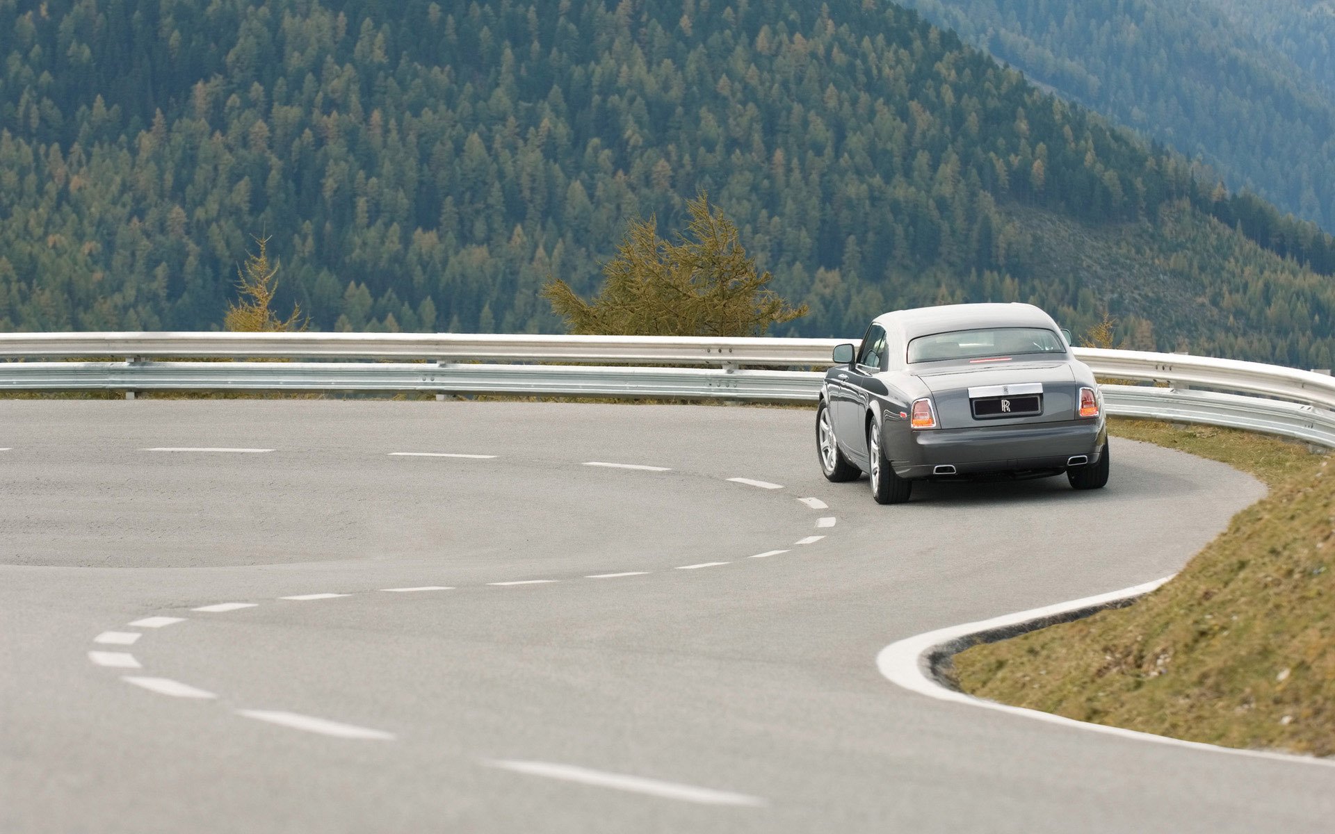 Rolls Royce na ostrym zakręcie wśród zielonych gór