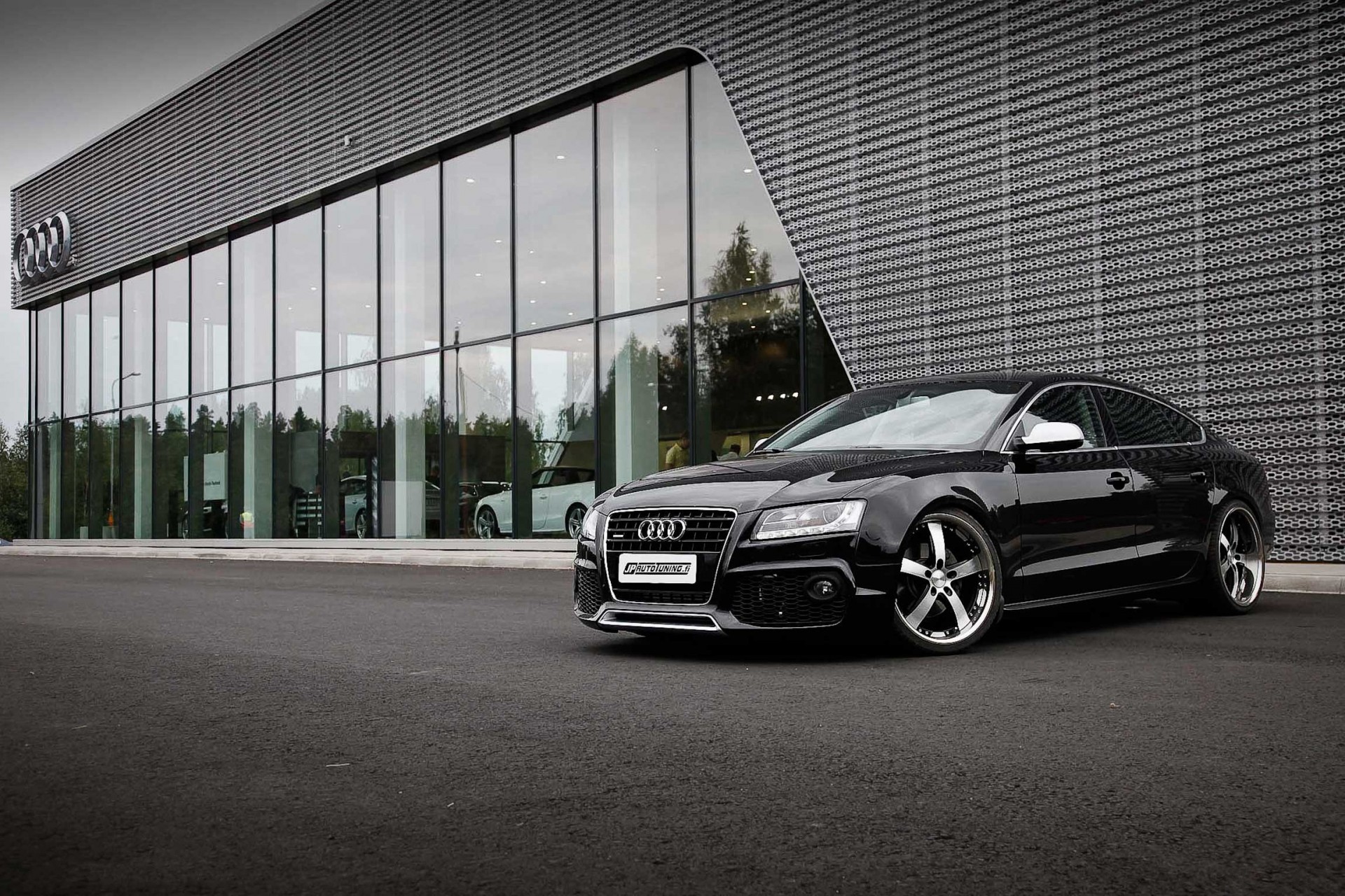 Samochód Ferrari f430 stoi na ciemnym tle o północy