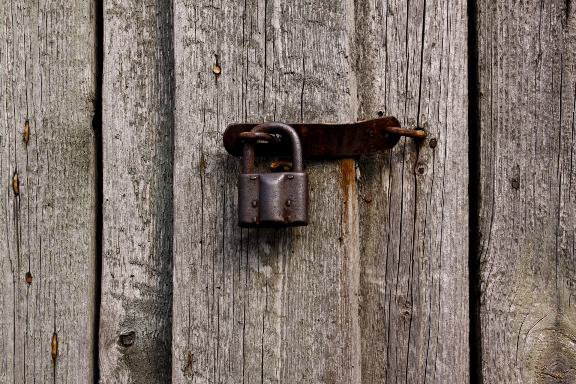 Metalowy zamek na drewnianych drzwiach