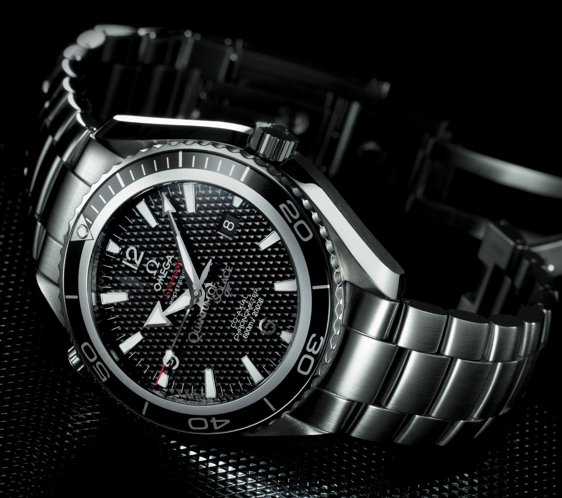 Zegarek z metalowym paskiem na pisku i ciemnym tle