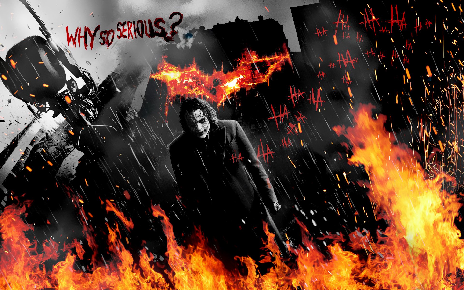 Joker w ogniu na ciemnym tle