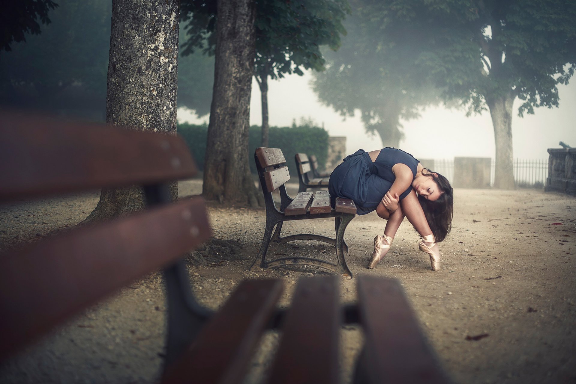 Zmęczona baletnica w miejskim parku