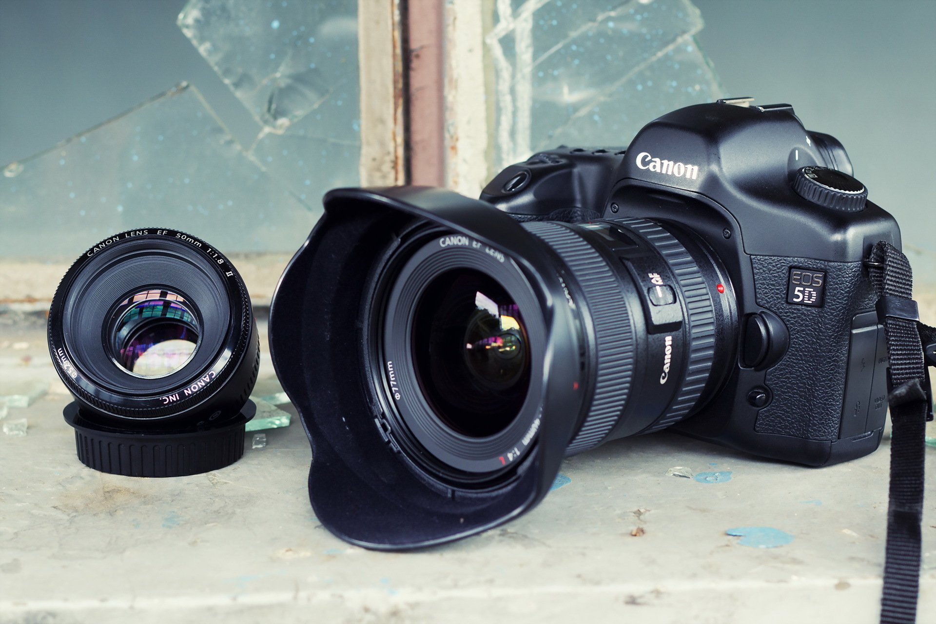 Dwa aparaty "Canon" i "Nikon" z dialogiem między nimi