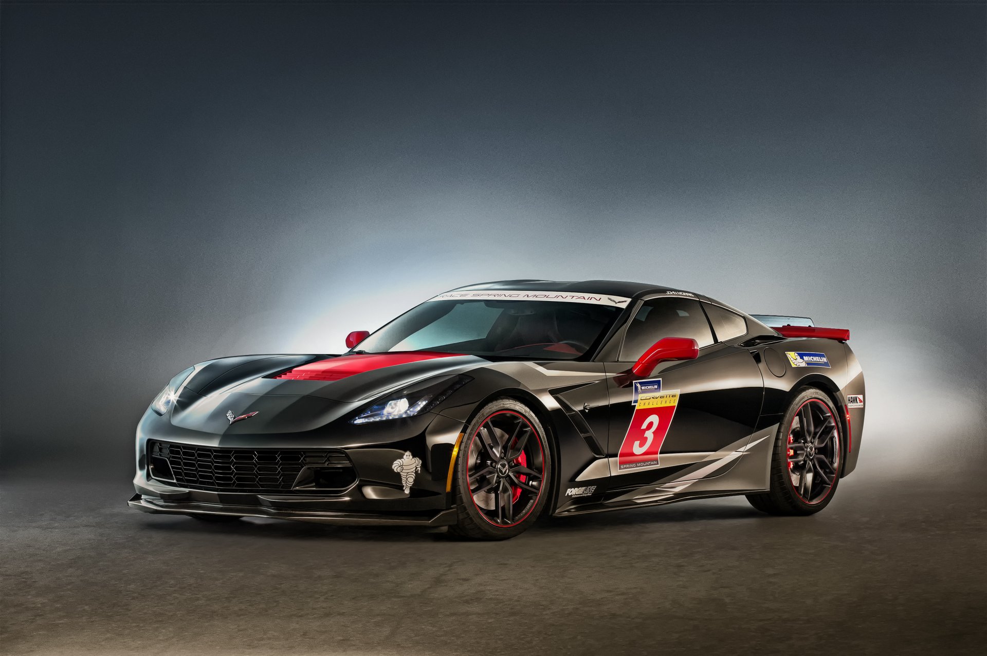Czerwony Chevrolet Corvette na tle gór na pulpicie