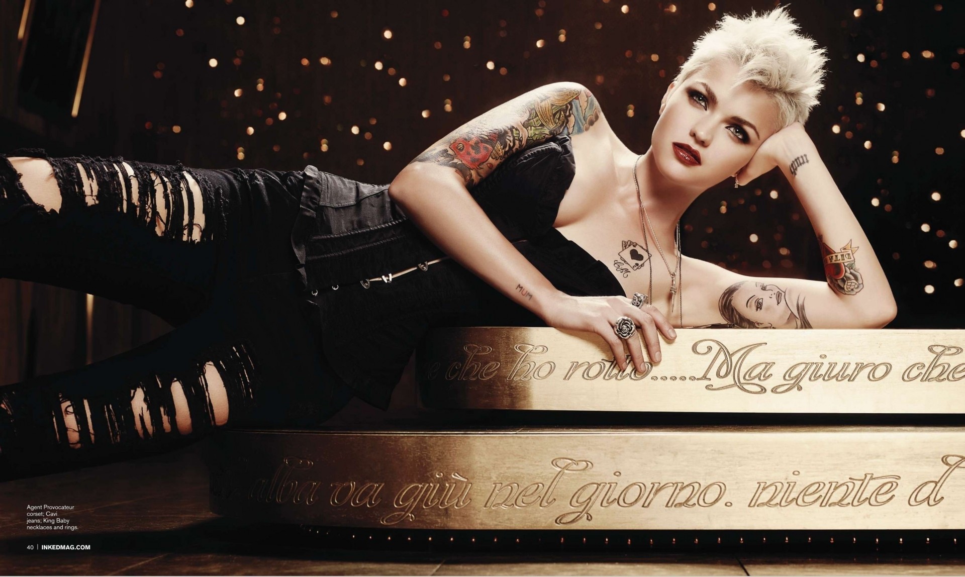 Sprytnie zmrużyła oczy rudowłosa dziewczyna opierając się o ścianę