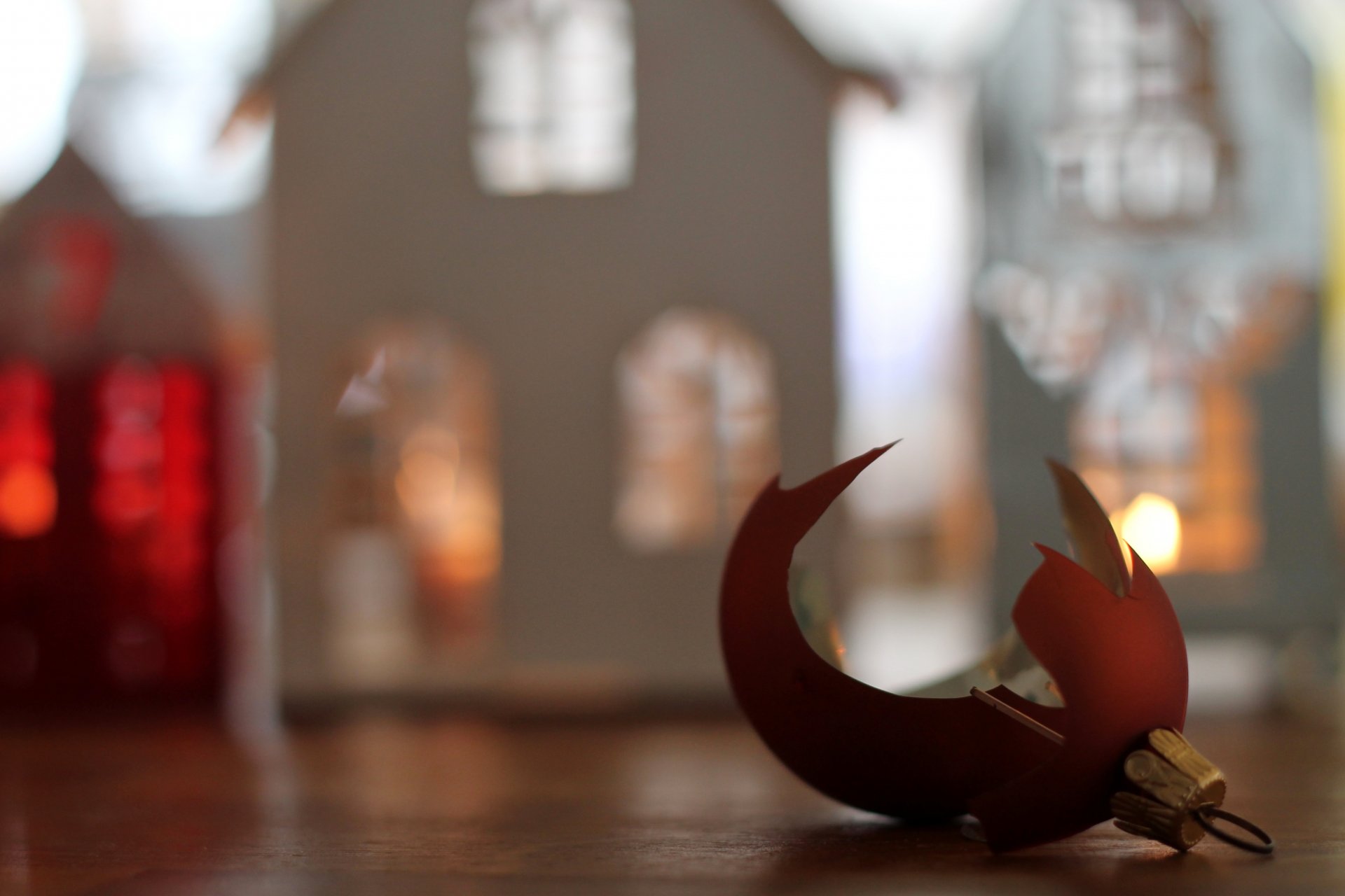 Noworoczna zabawka na choinkę. Gwiazda na pomarańczowym tle