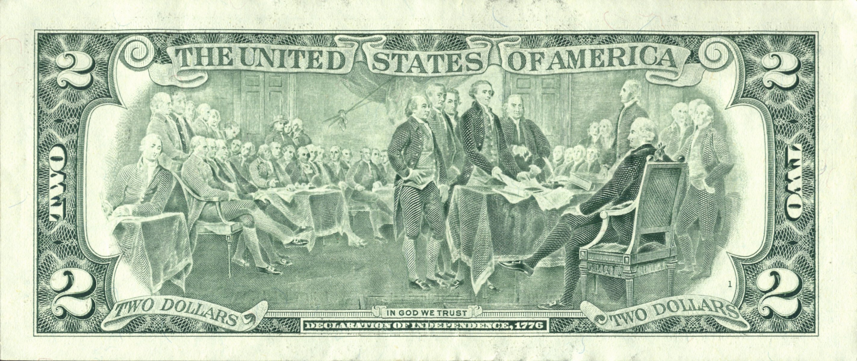 Podpisanie Deklaracji Niepodległości na rachunku za dwa dolary
