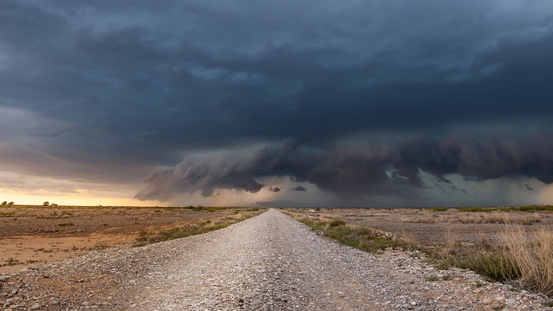 Wieczorna droga. Słońce przebija się przez chmury