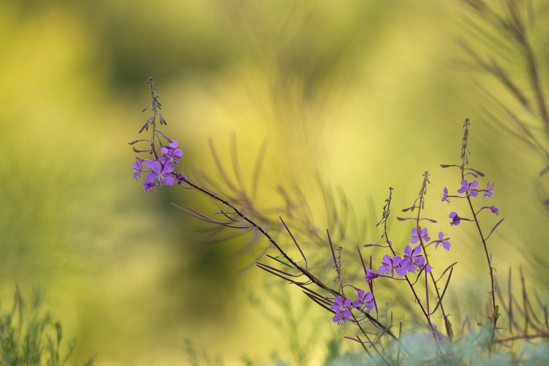 Ruda dziewczyna w biało-żółtej sukience z żółtymi kulkami na polu z wysokimi żółtymi kwiatami