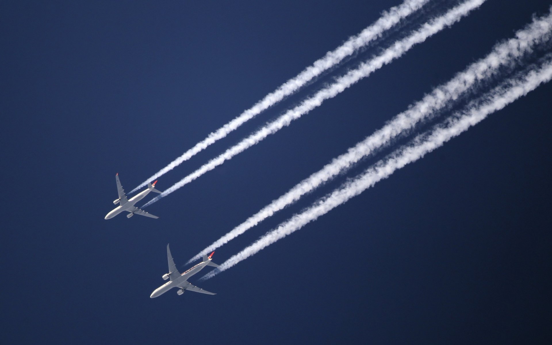 Na niebie lecą dwa samoloty i zostawiają ślad