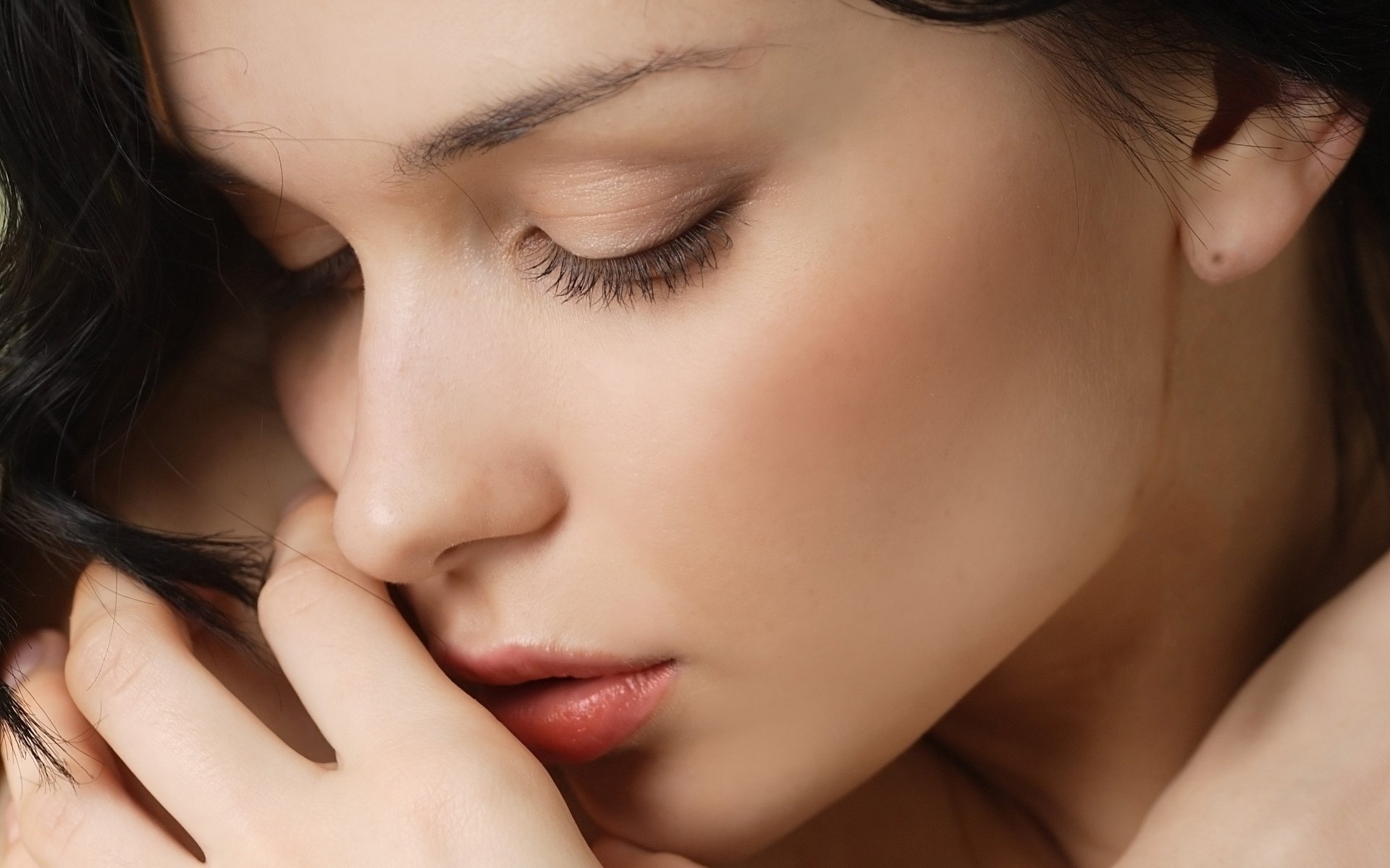 Brunetka pozuje na kanapie do sesji zdjęciowej