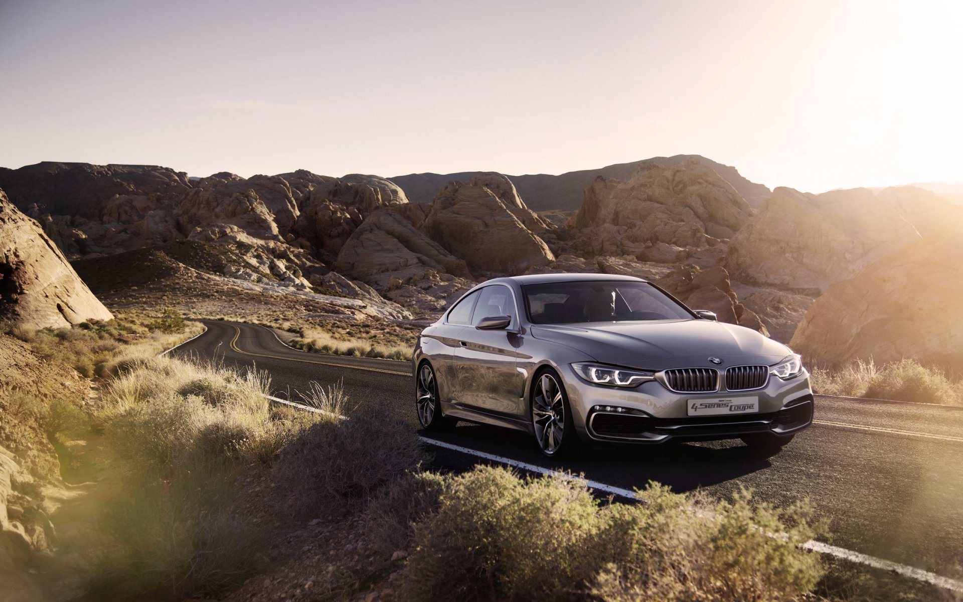 Fajny samochód marki BMW ścigający się po pustynnej drodze