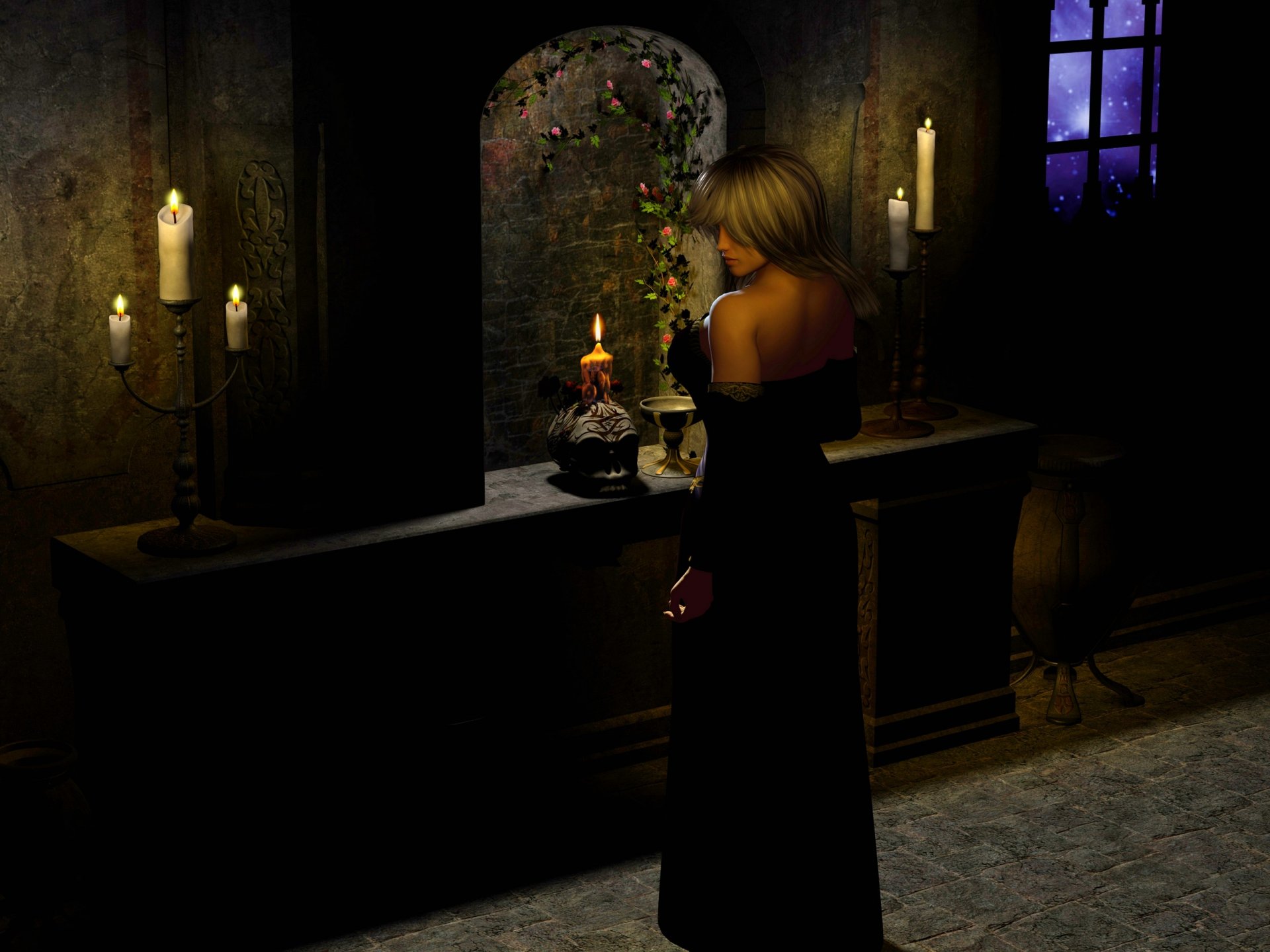 Kobieta w czarnej gotyckiej sukience na tle latających motyli