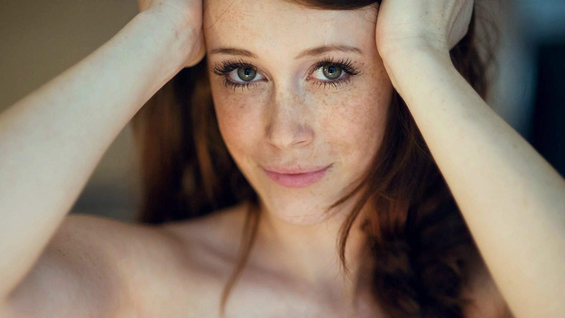 Dziewczyna z piegami pozowanie do kamery