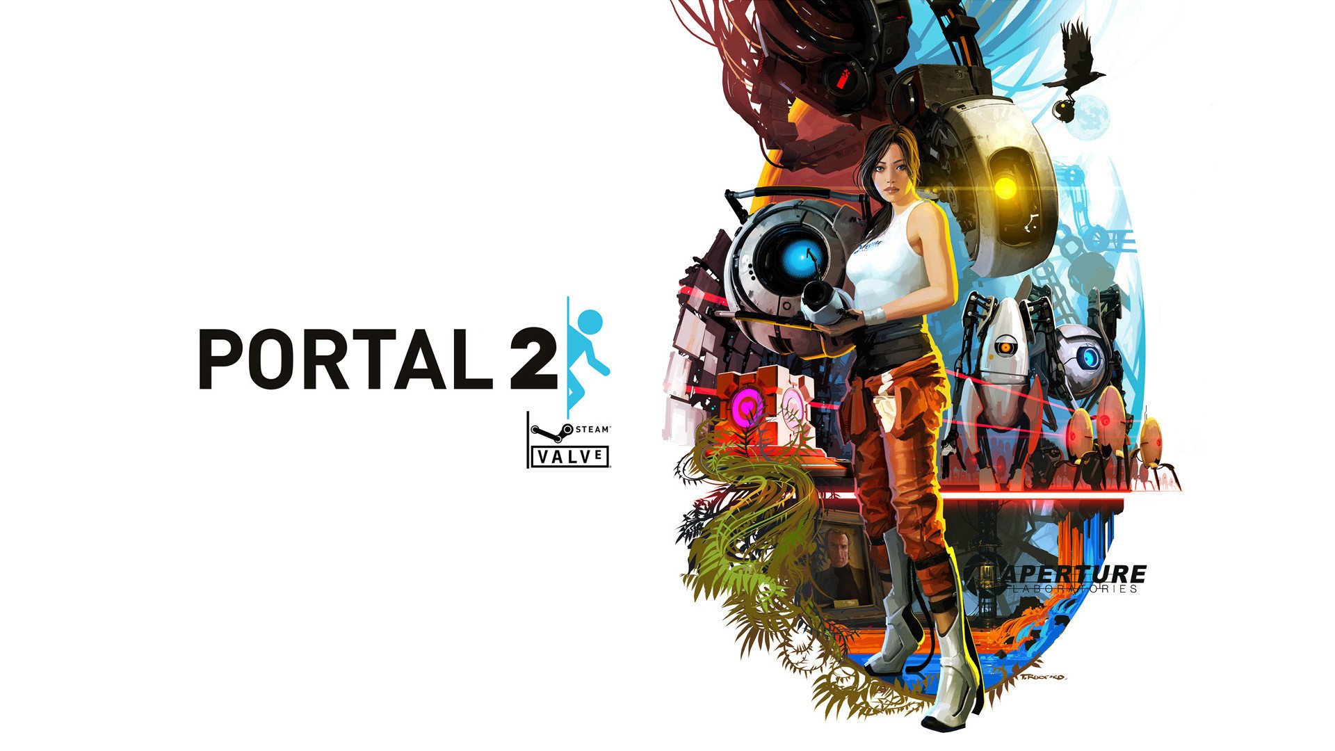 Portal 2 roboty z dziewczyną na białym tle