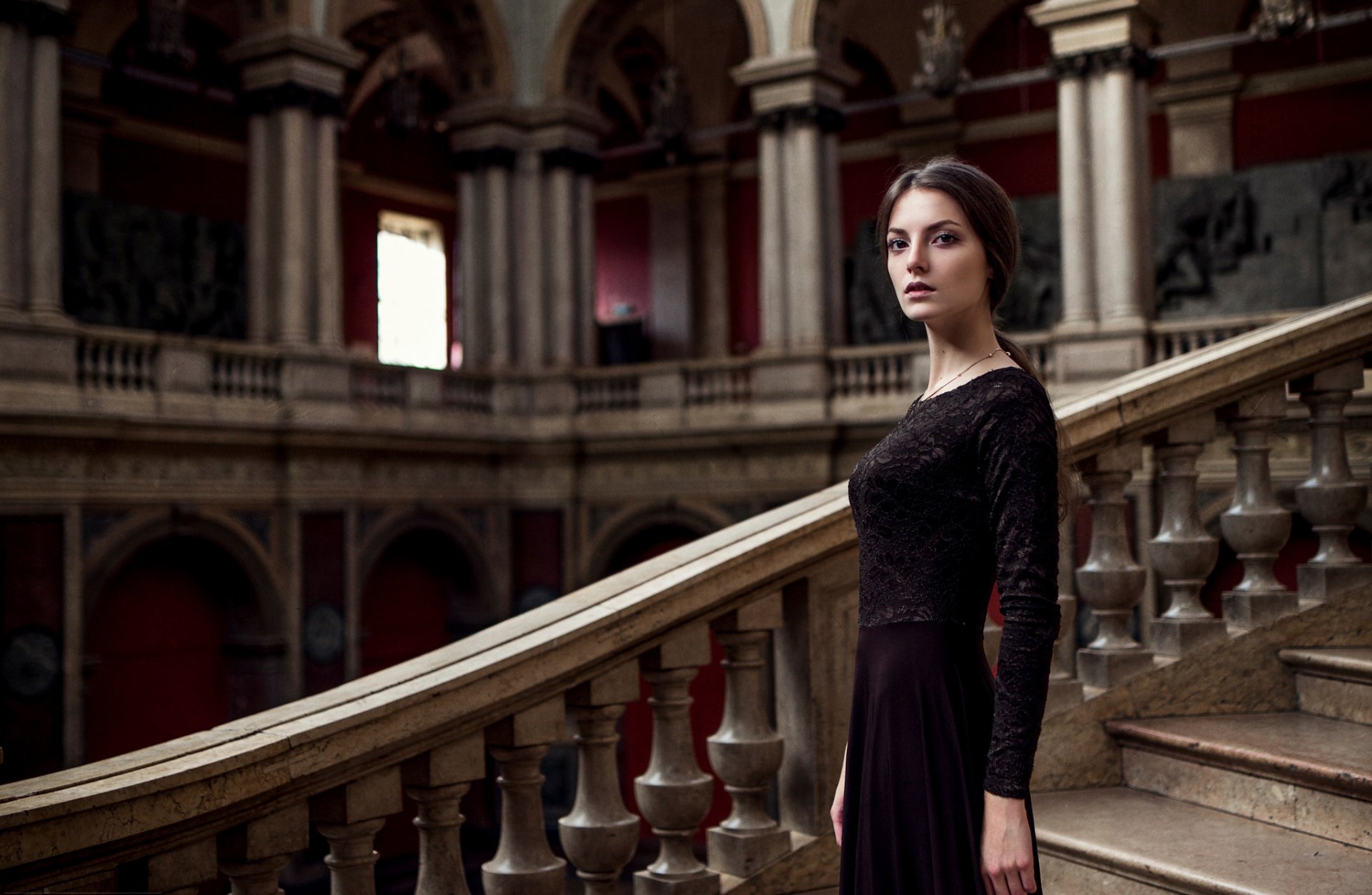 Dziewczyna na schodach ogromnego zamku