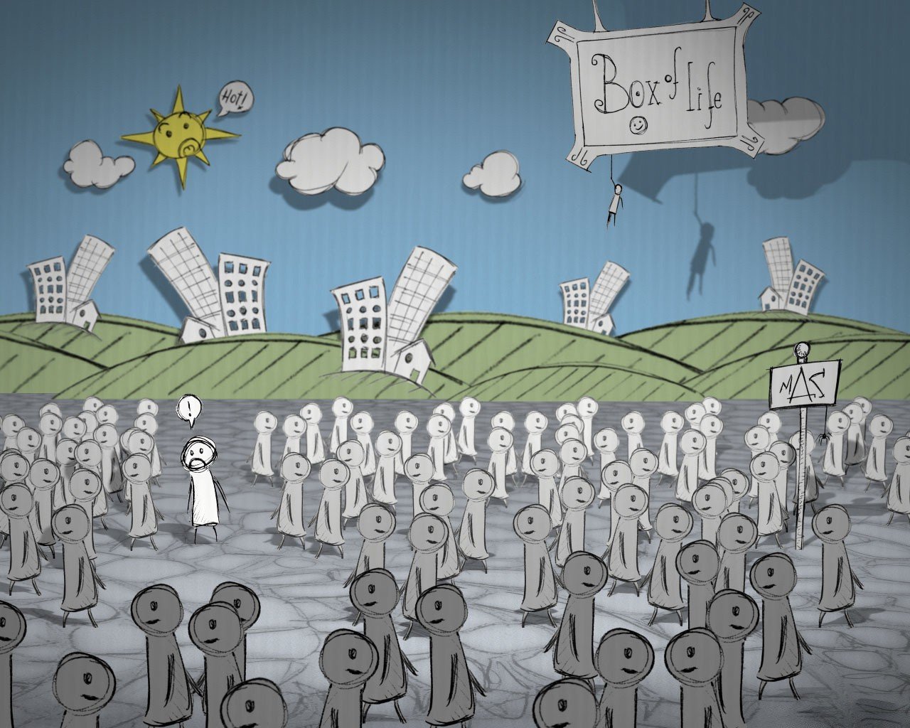 Wygaszacz ekranu przedstawiający ludzi w lesie