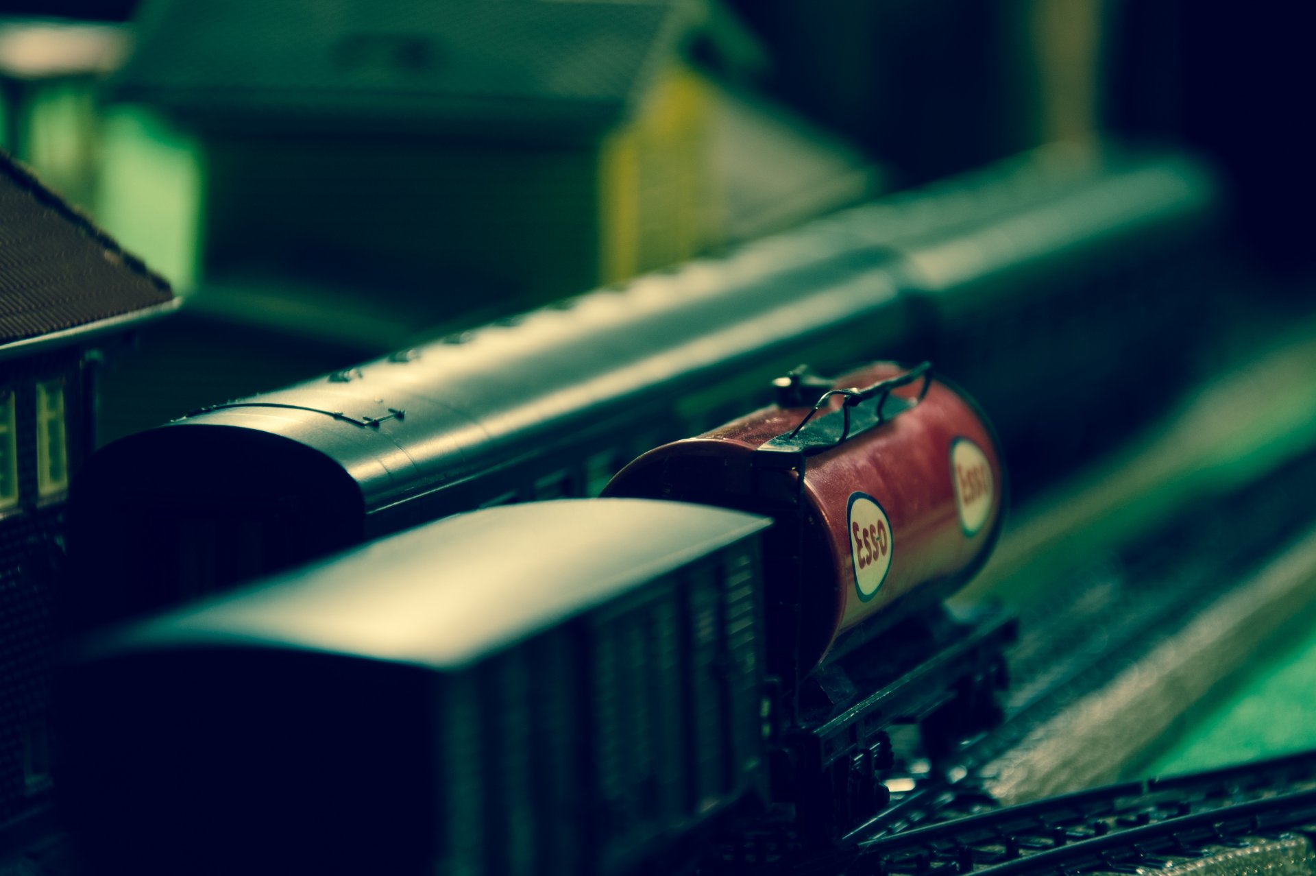 Kolejka zabawkowa z wagonami i cysterną