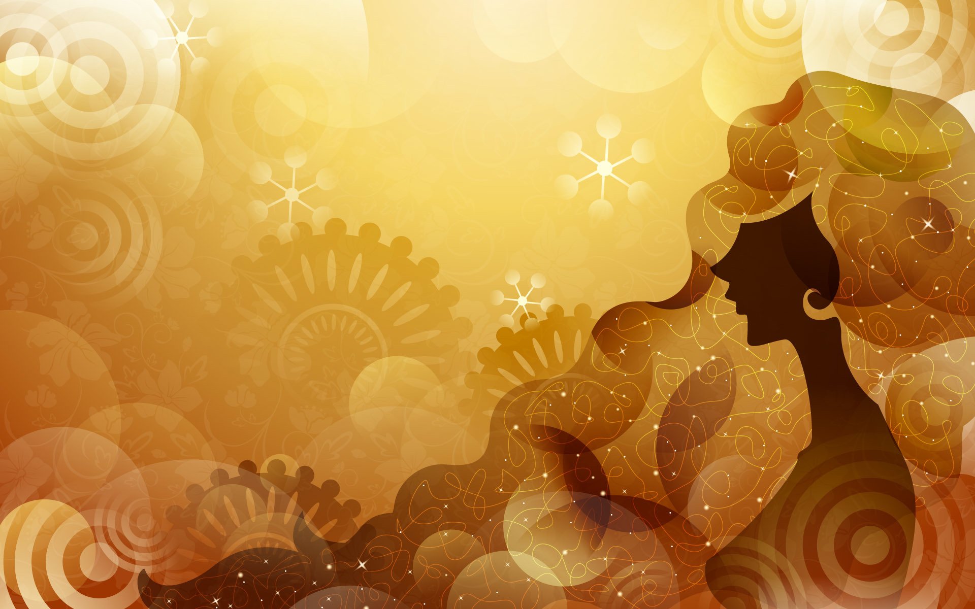 Cyfrowa karta artystyczna z sylwetką dziewczyny z błyszczącymi włosami