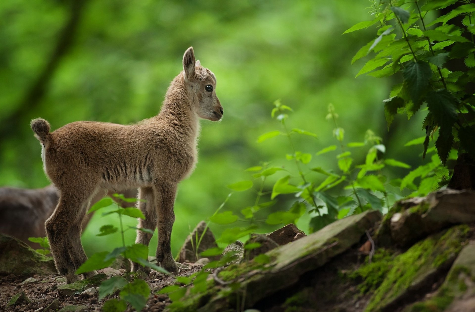 Mała Koza spaceruje po zielonym lesie