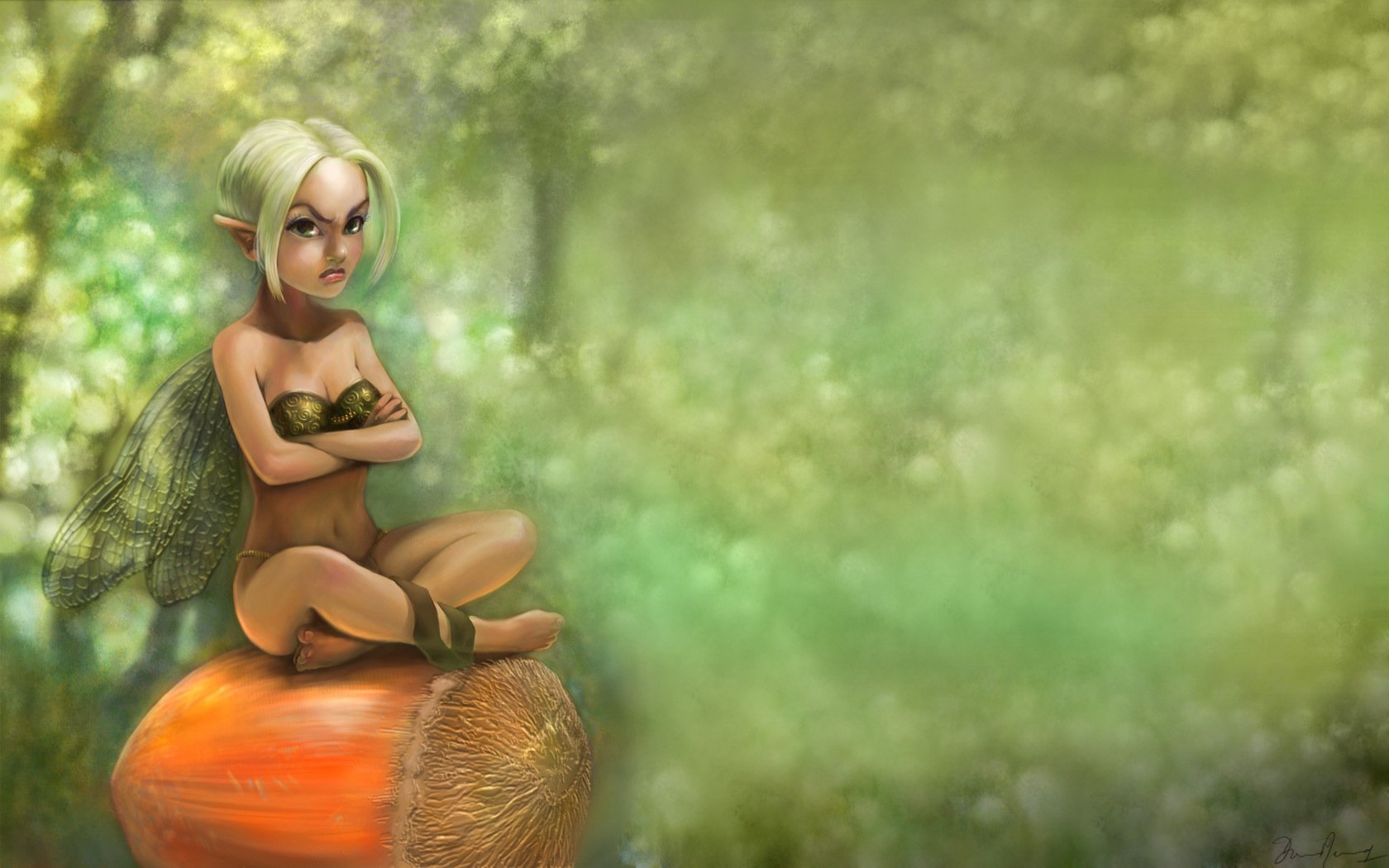Elf siedzi na orzechu w urazie i złości
