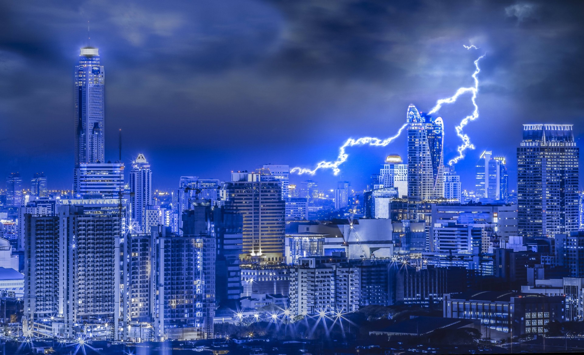 Nocny Bangkok przy niesprzyjającej pogodzie