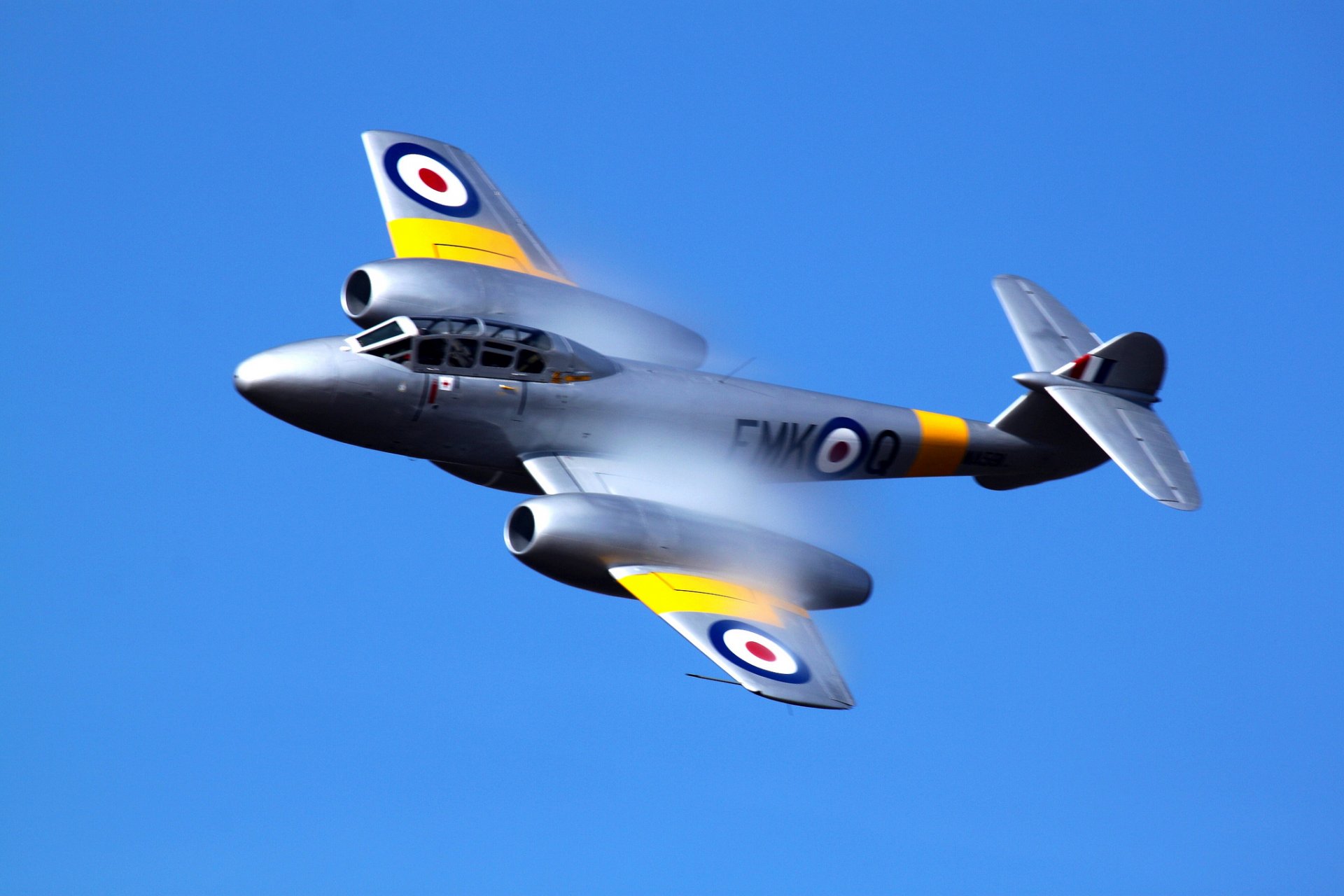 Na błękitnym niebie błyszczą srebrne skrzydła myśliwca