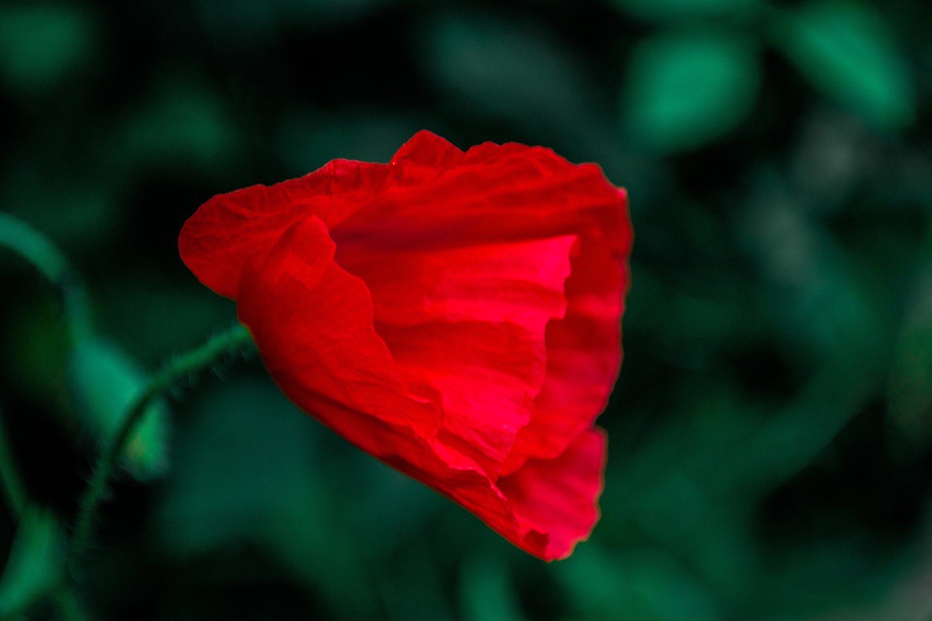 Czerwony mak, zieleń i kwiaty na wiosnę