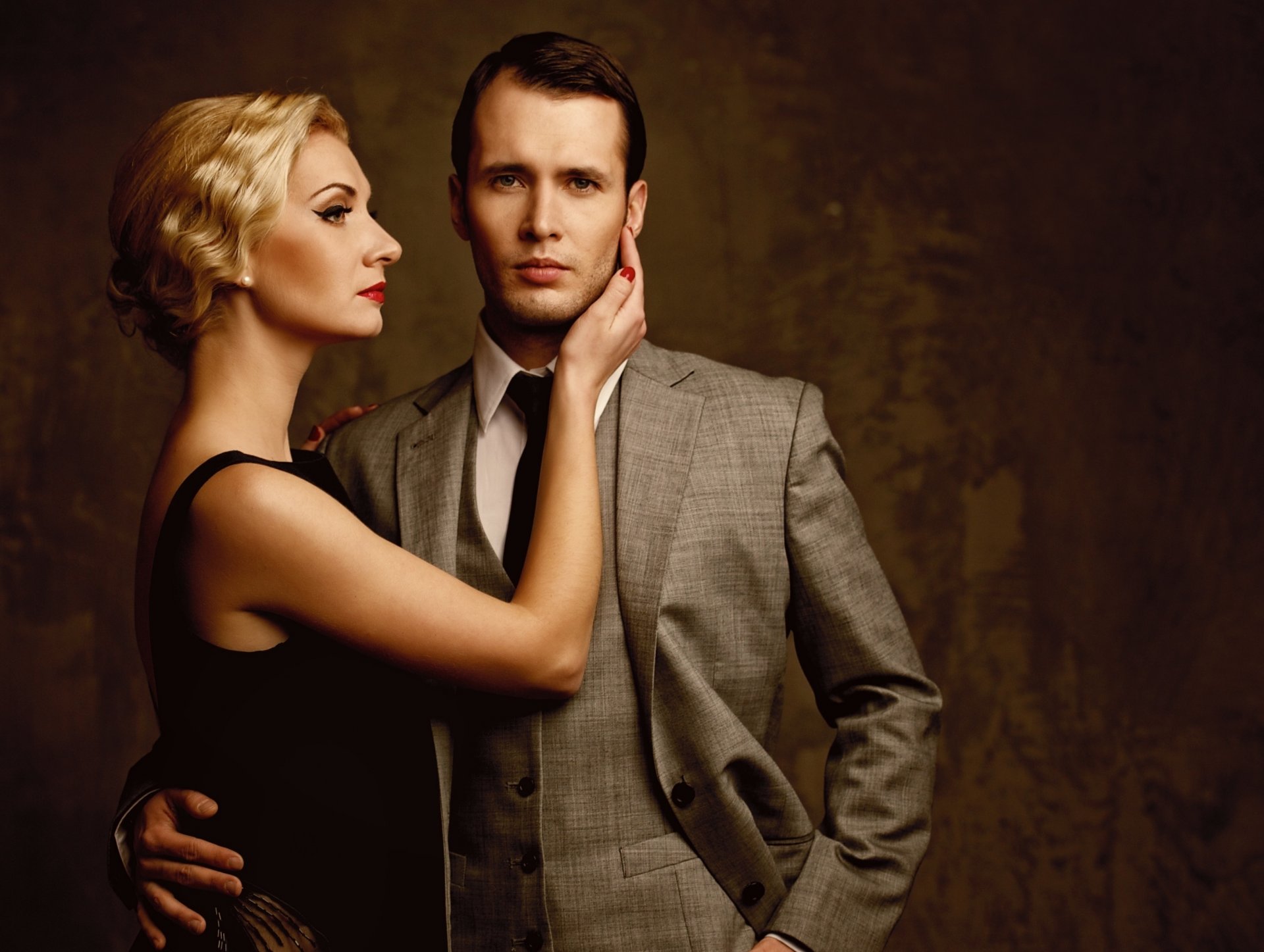 Dziewczyna i mężczyzna w ciemnym pokoju