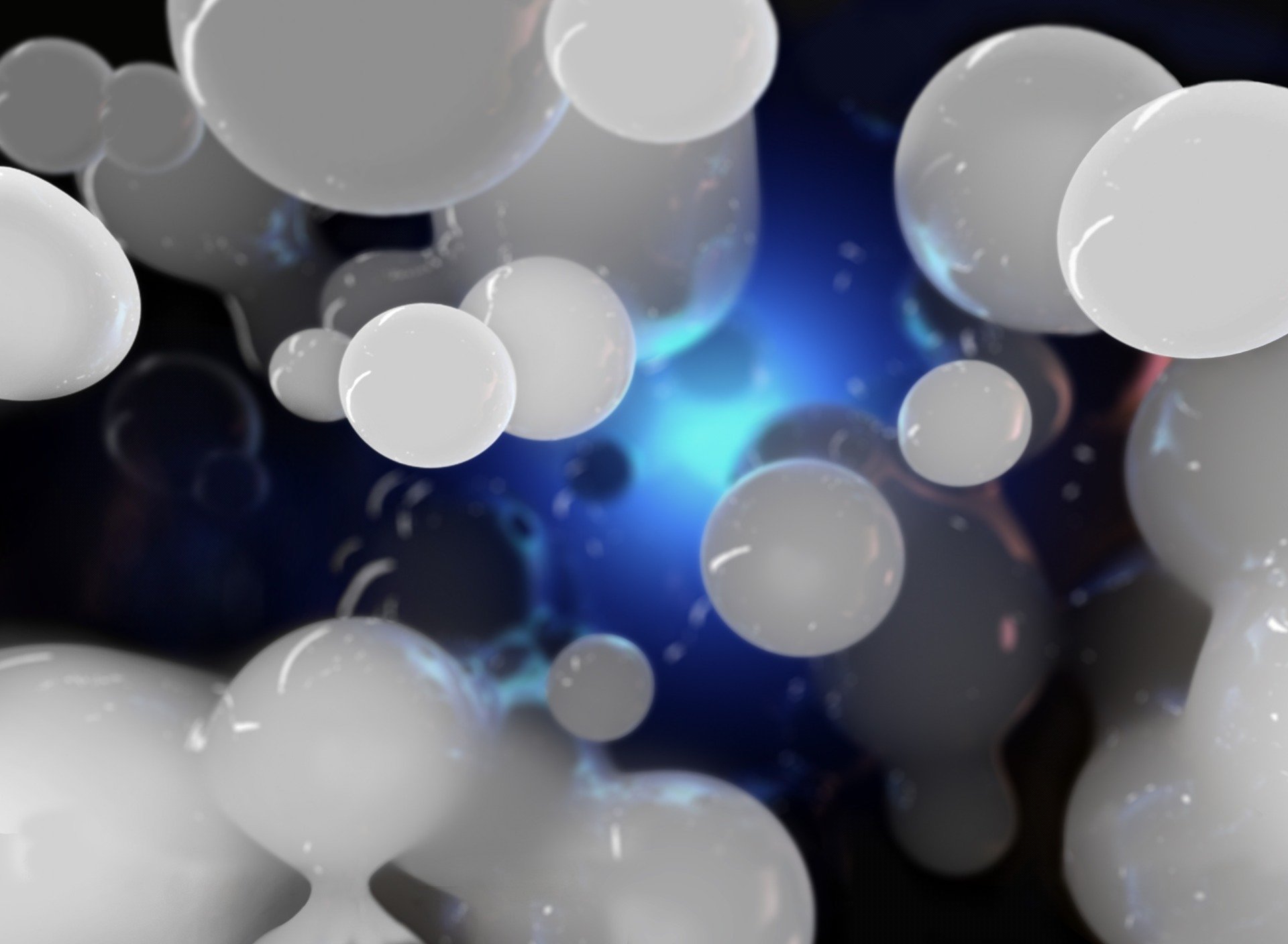 Białe kule w niebieskiej masie