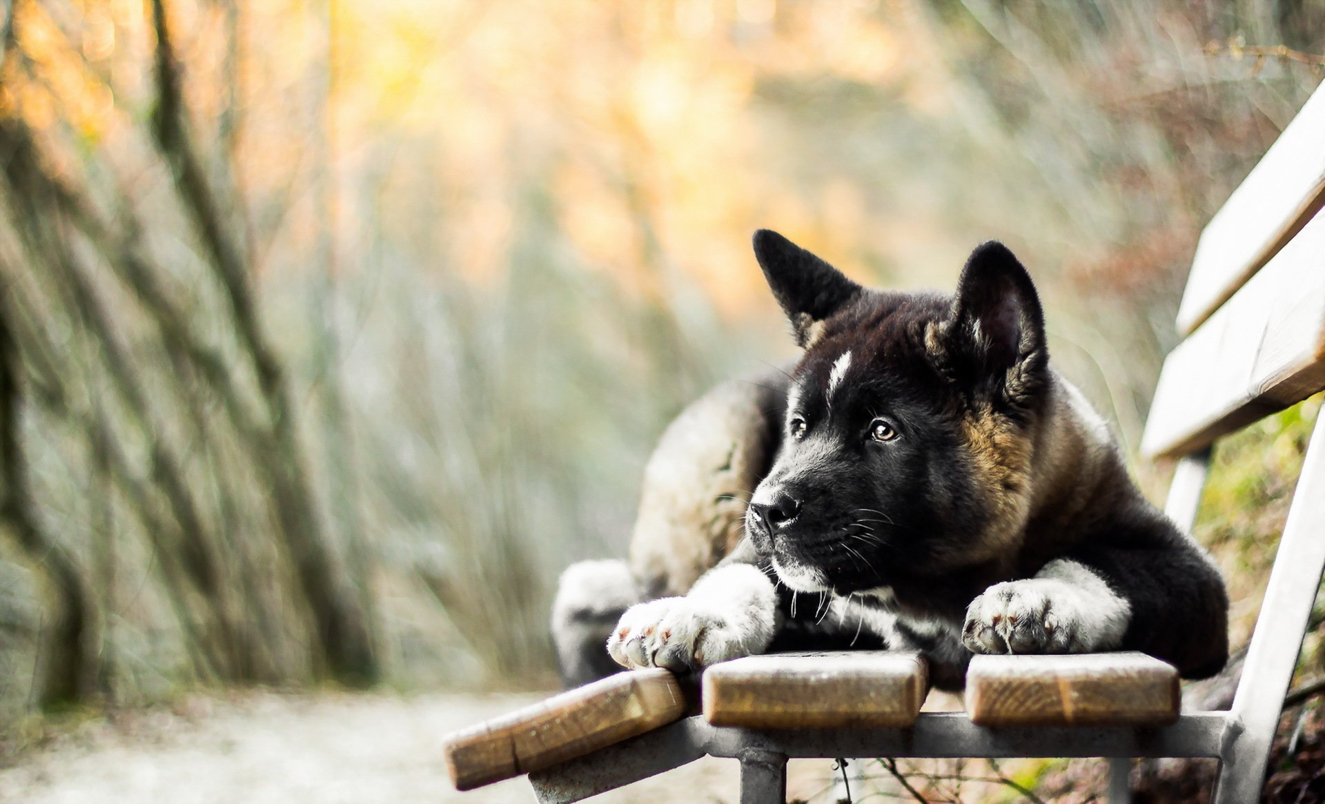 Pies z oddanym spojrzeniem leży na poduszce, zdjęcie z bliska
