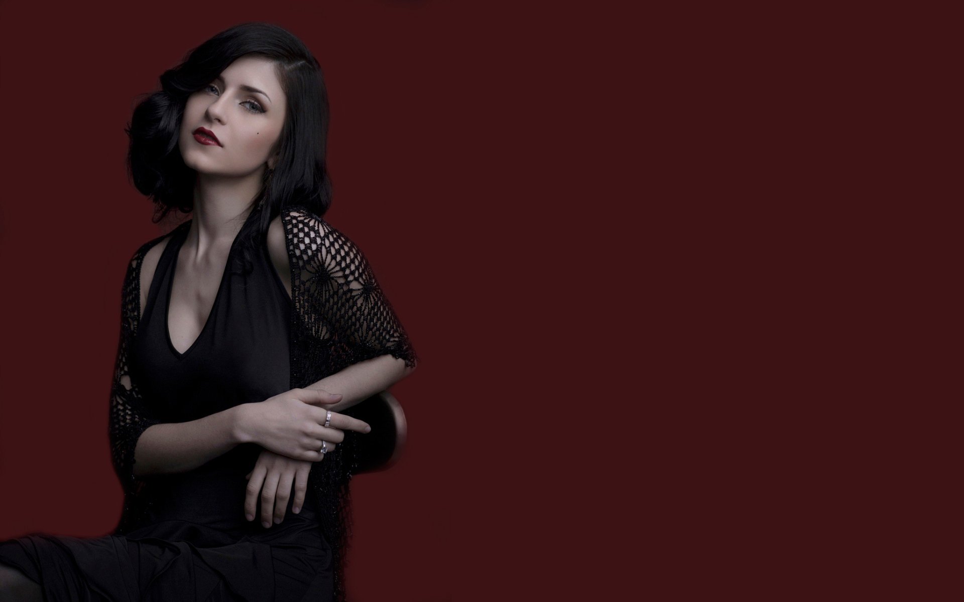 Portret modelki na ciemnoczerwonym tle