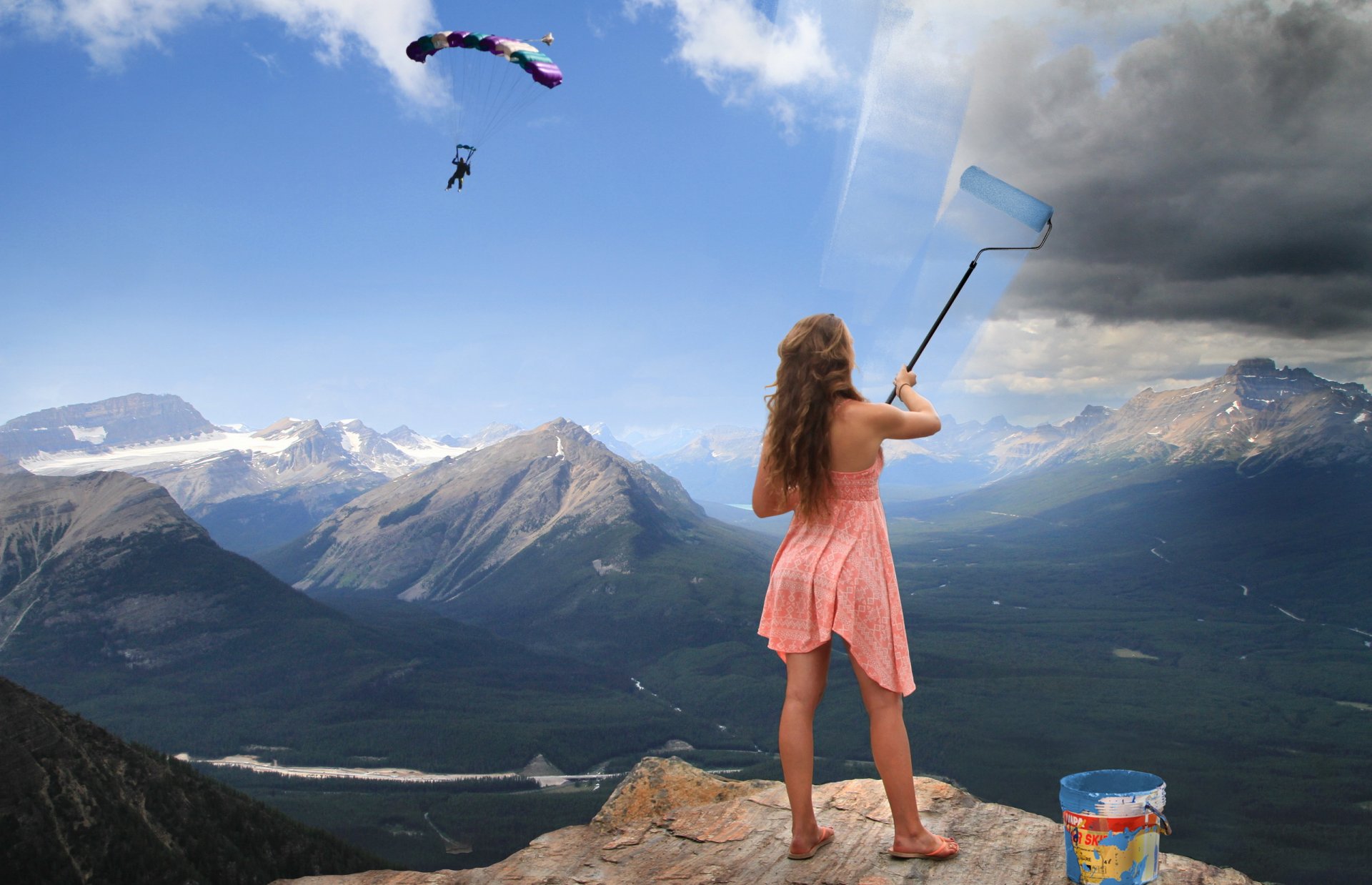 Dziewczyna maluje niebo farbami