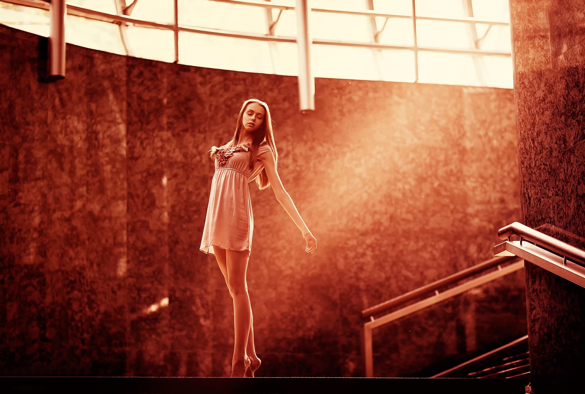 Dziewczyna tańczy w czerwonym pomieszczeniu