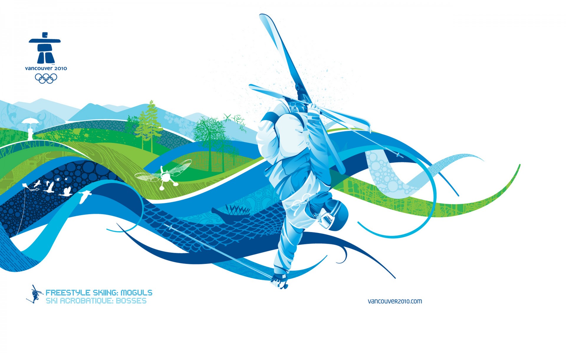 Narciarz na trasie. Olimpiada w Vancouver. Rysunek